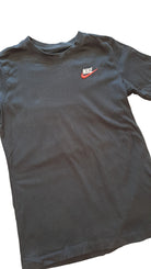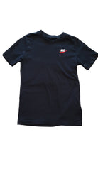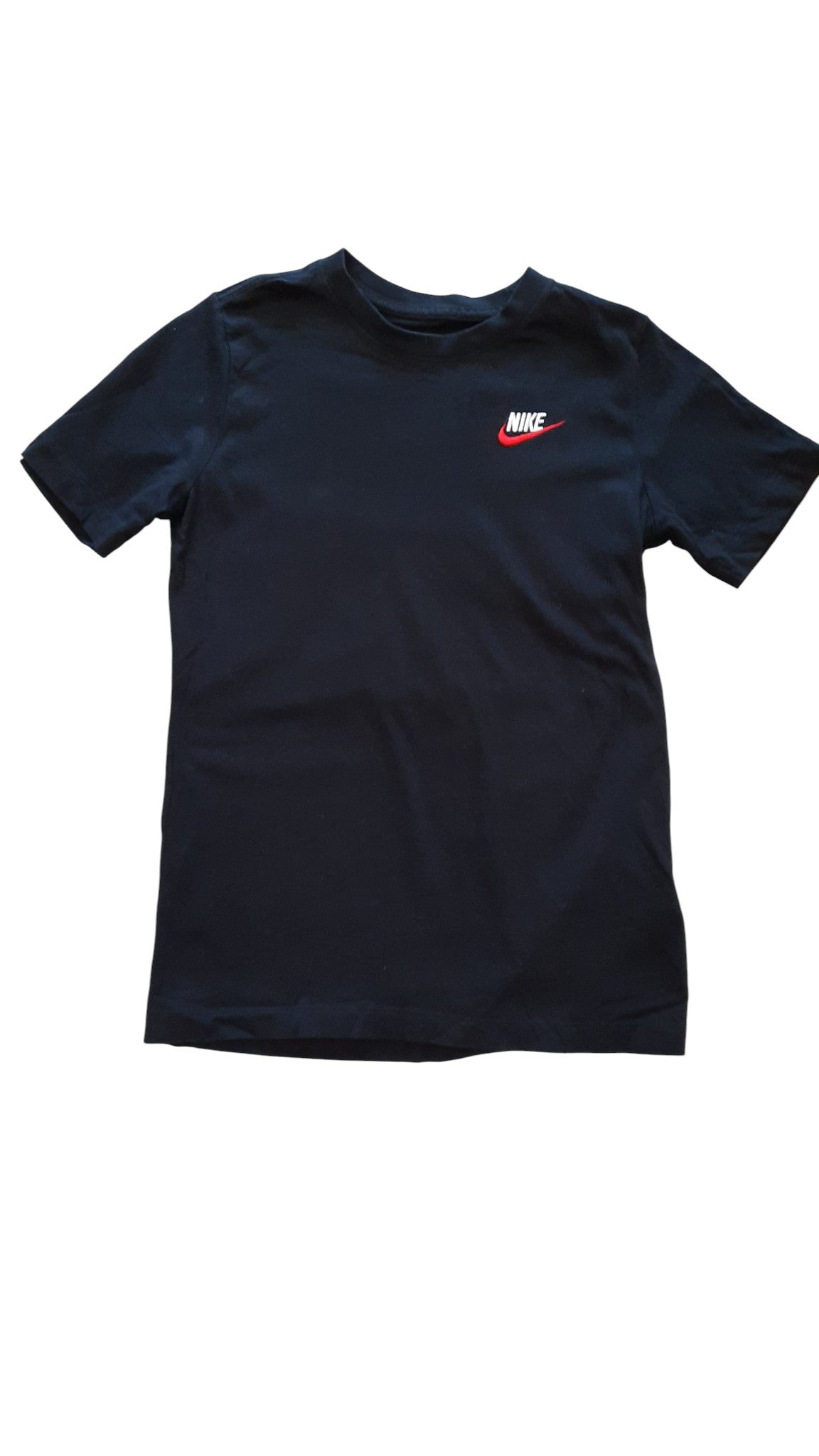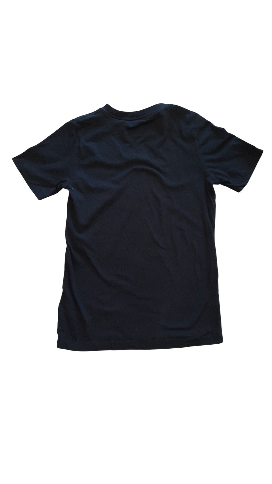 The Nike Tee in black, size medium (137-147cm, 8-10yrs), 100% cotton.