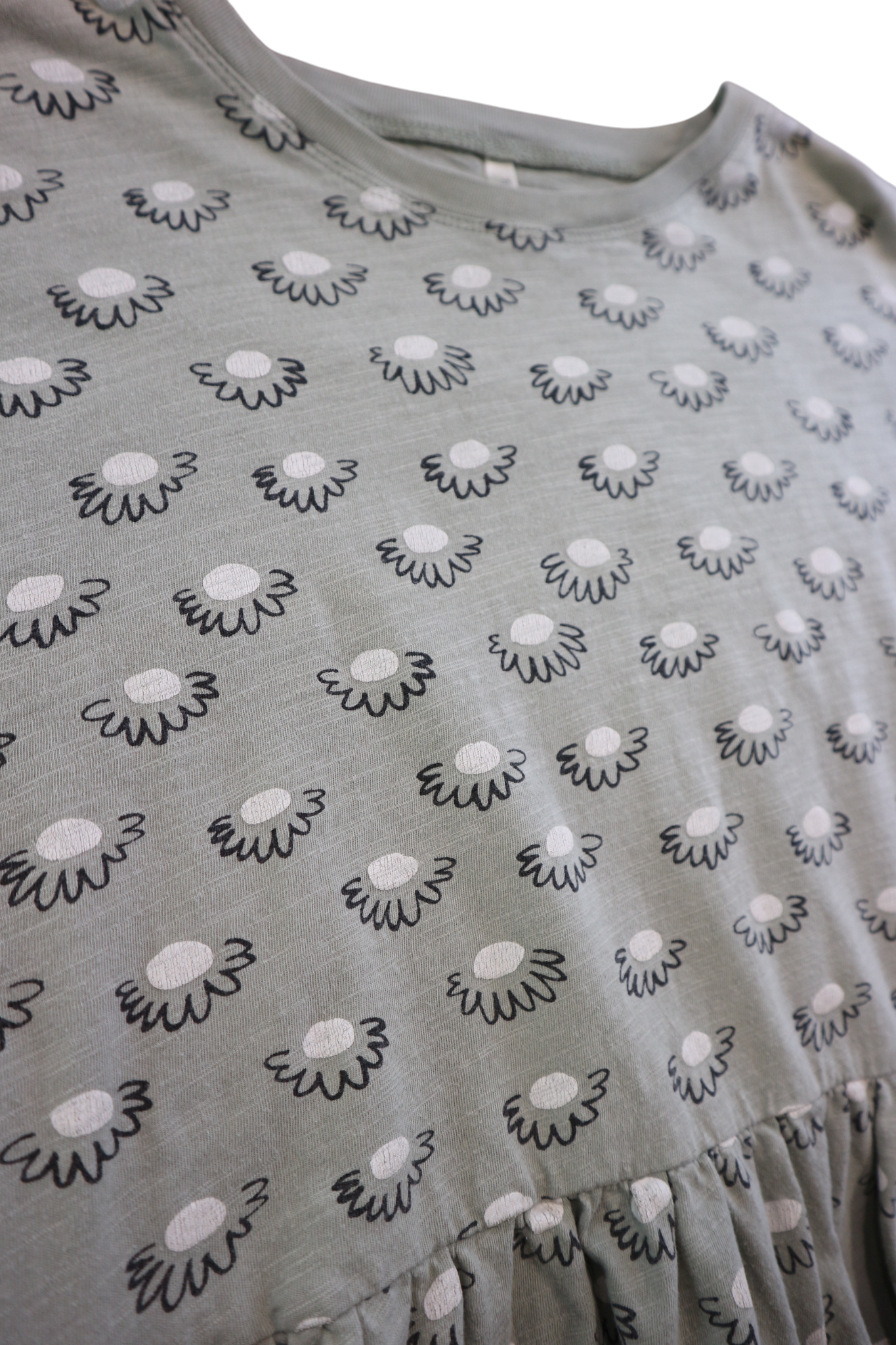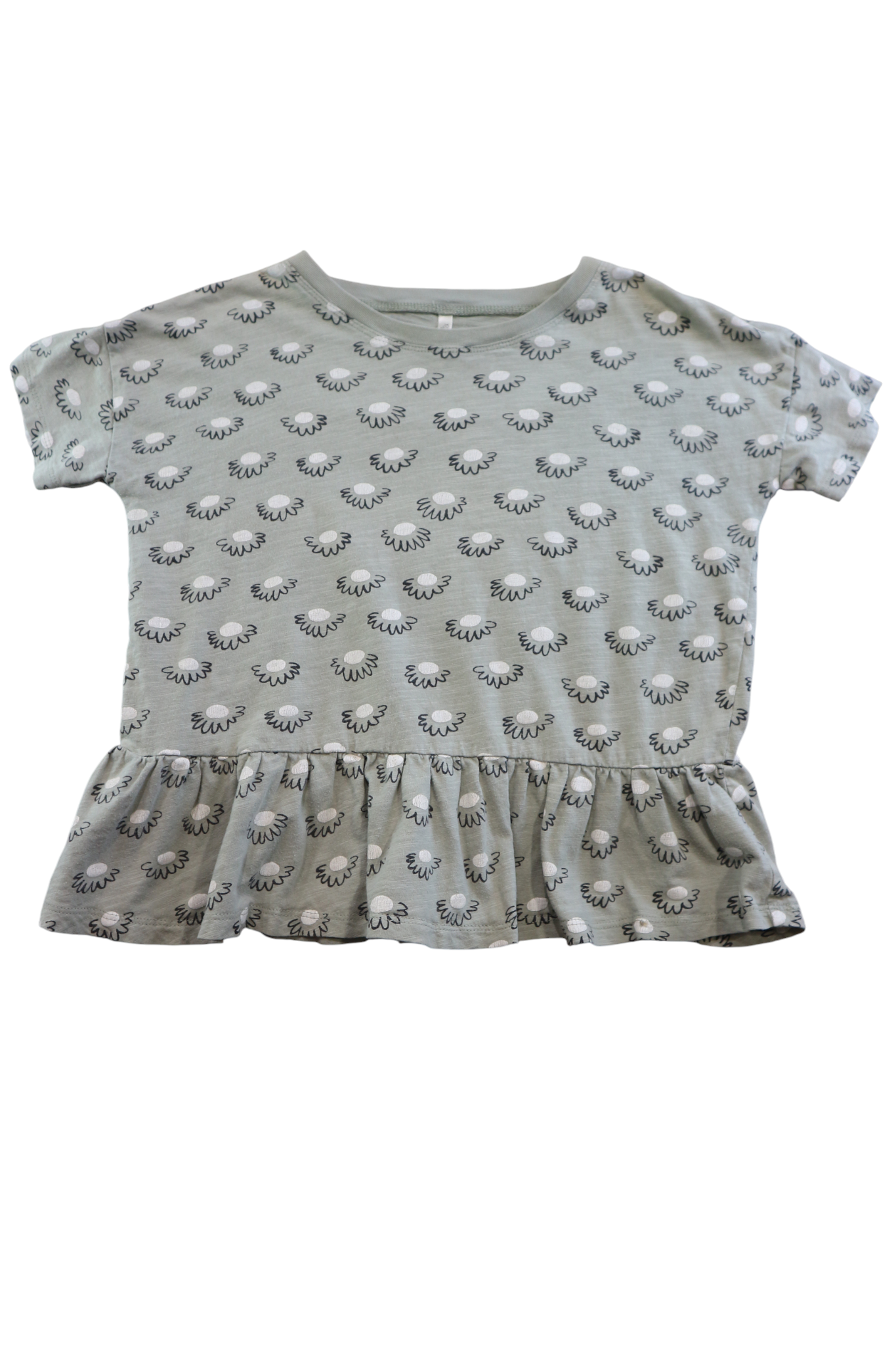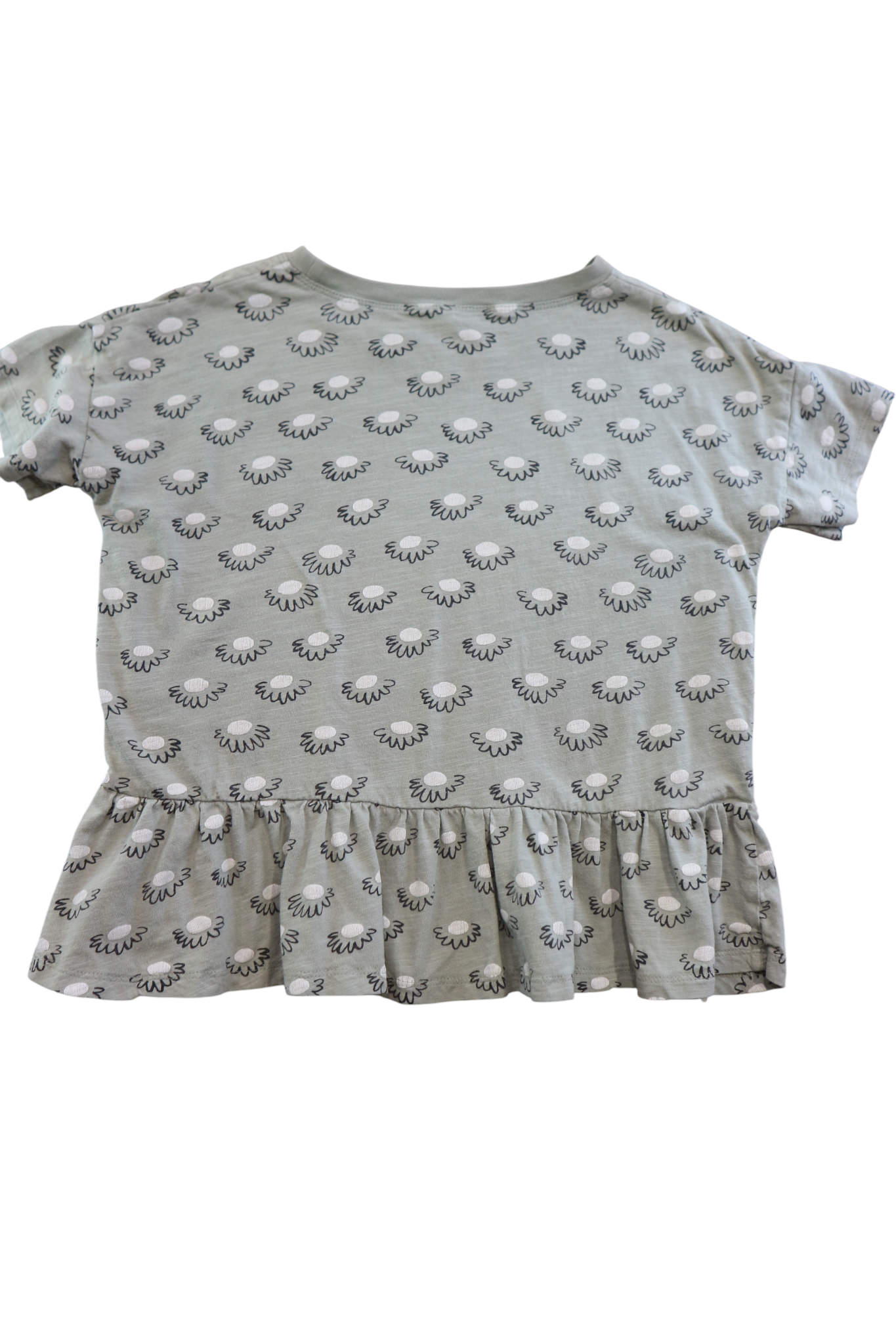Rylee & Cru green boxy top with frill hem, size 8-9yrs. Cotton/elastane.