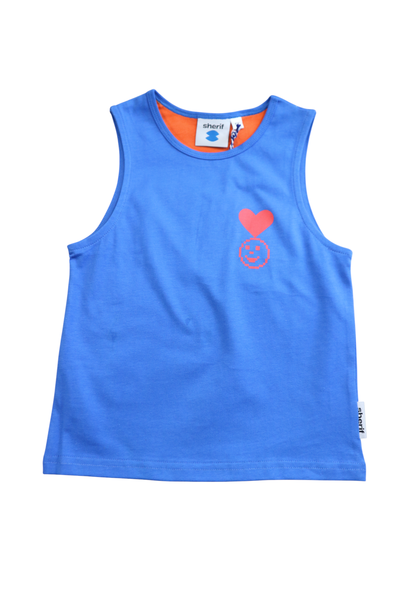 Sherif tank top in blue with print, size 5. 100% Cotton/