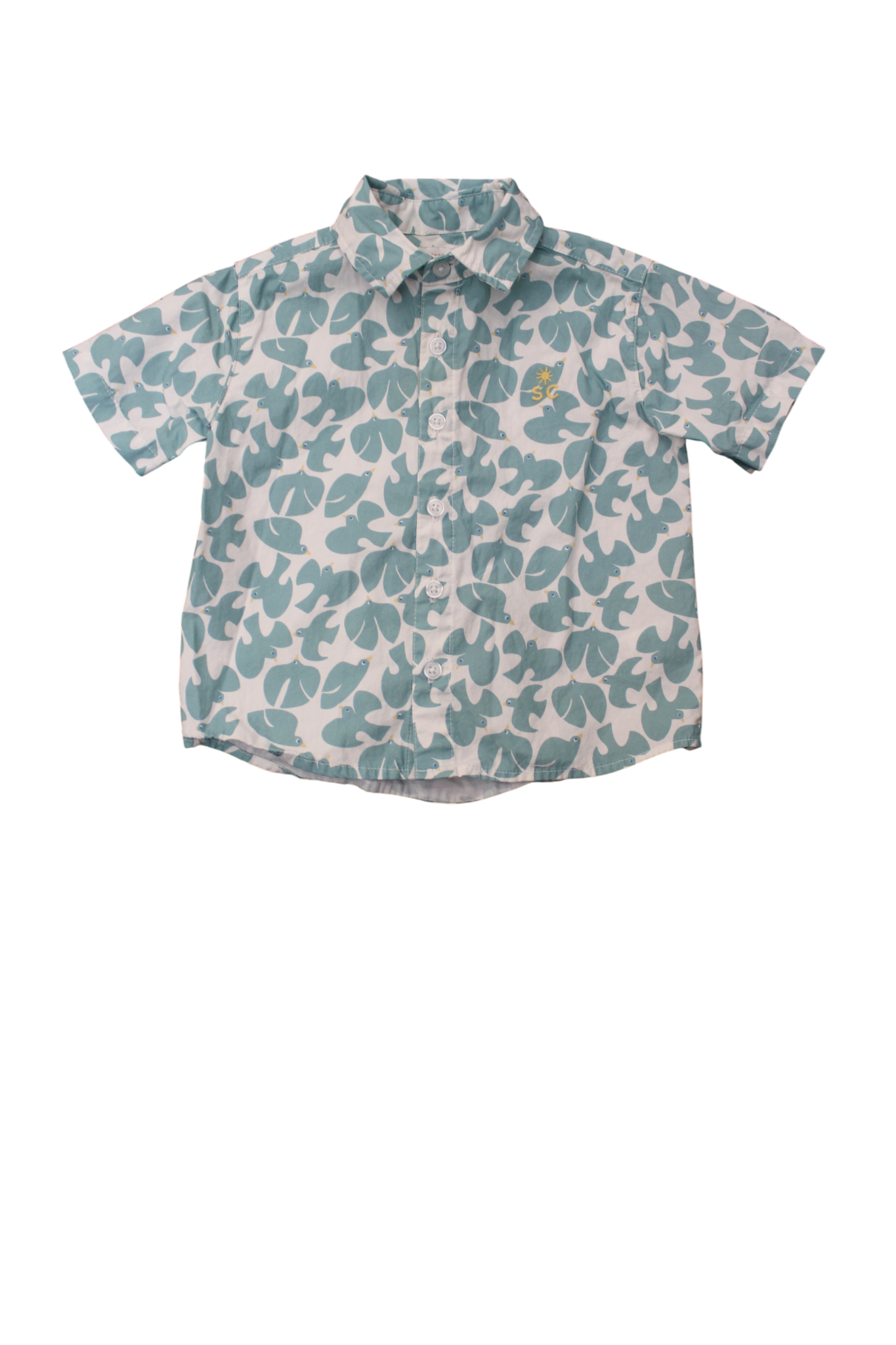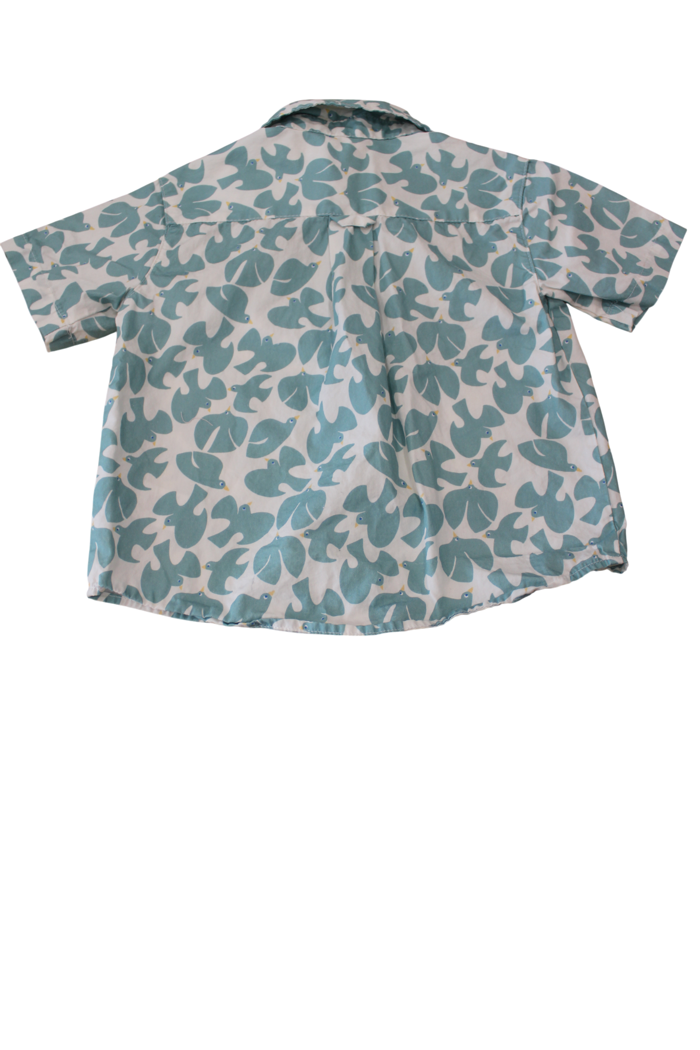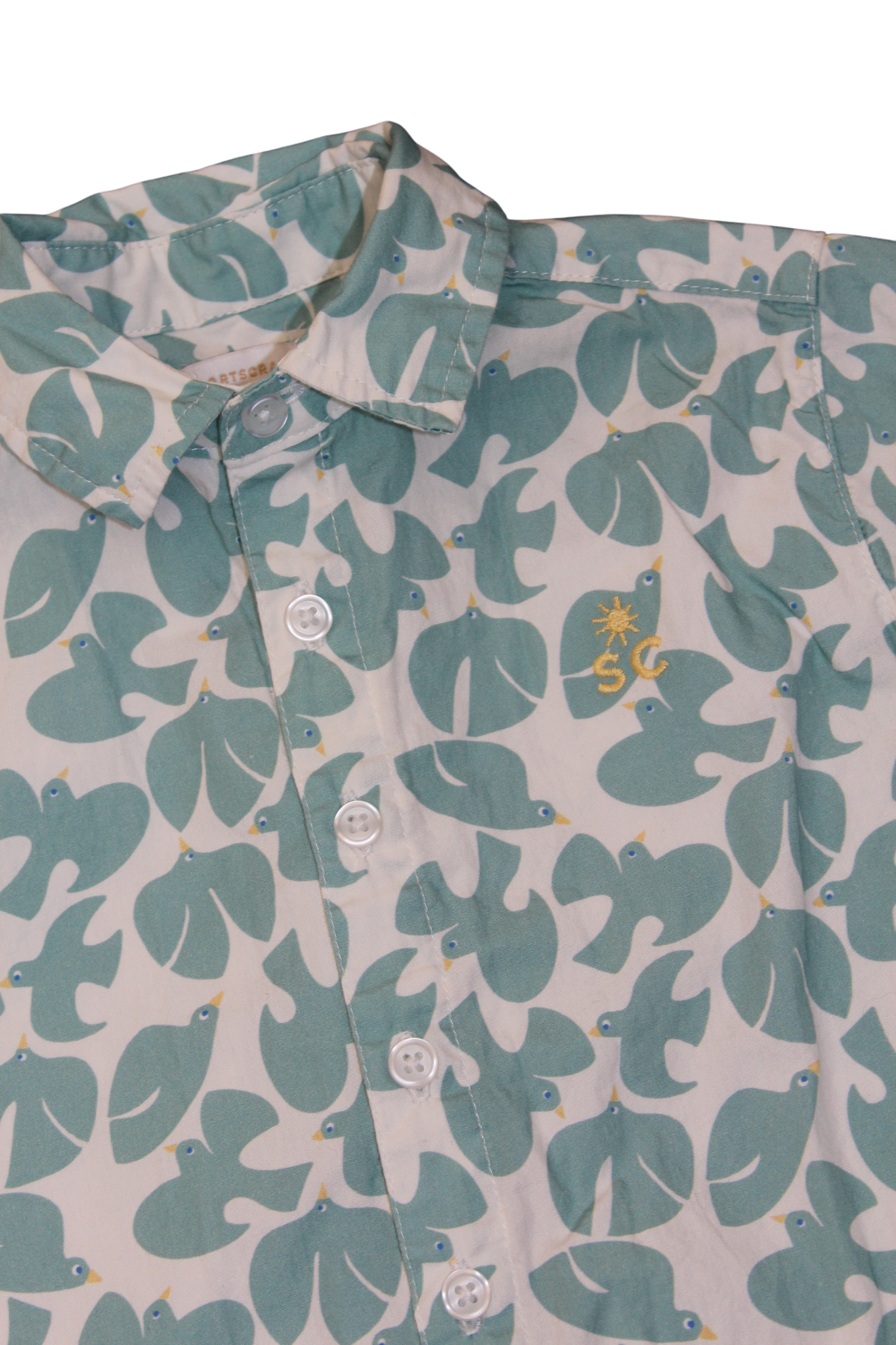 The Sportscraft button-up shirt for children features a charming light blue colour with a playful bird print, adding a touch of fun to classic style. Made with soft, breathable fabric, it ensures all-day comfort while offering easy dressing with convenient buttons. Perfect for casual outings or family gatherings, this shirt combines delightful design with practical wearability. 100% cotton, good condition (slight mark on the back)