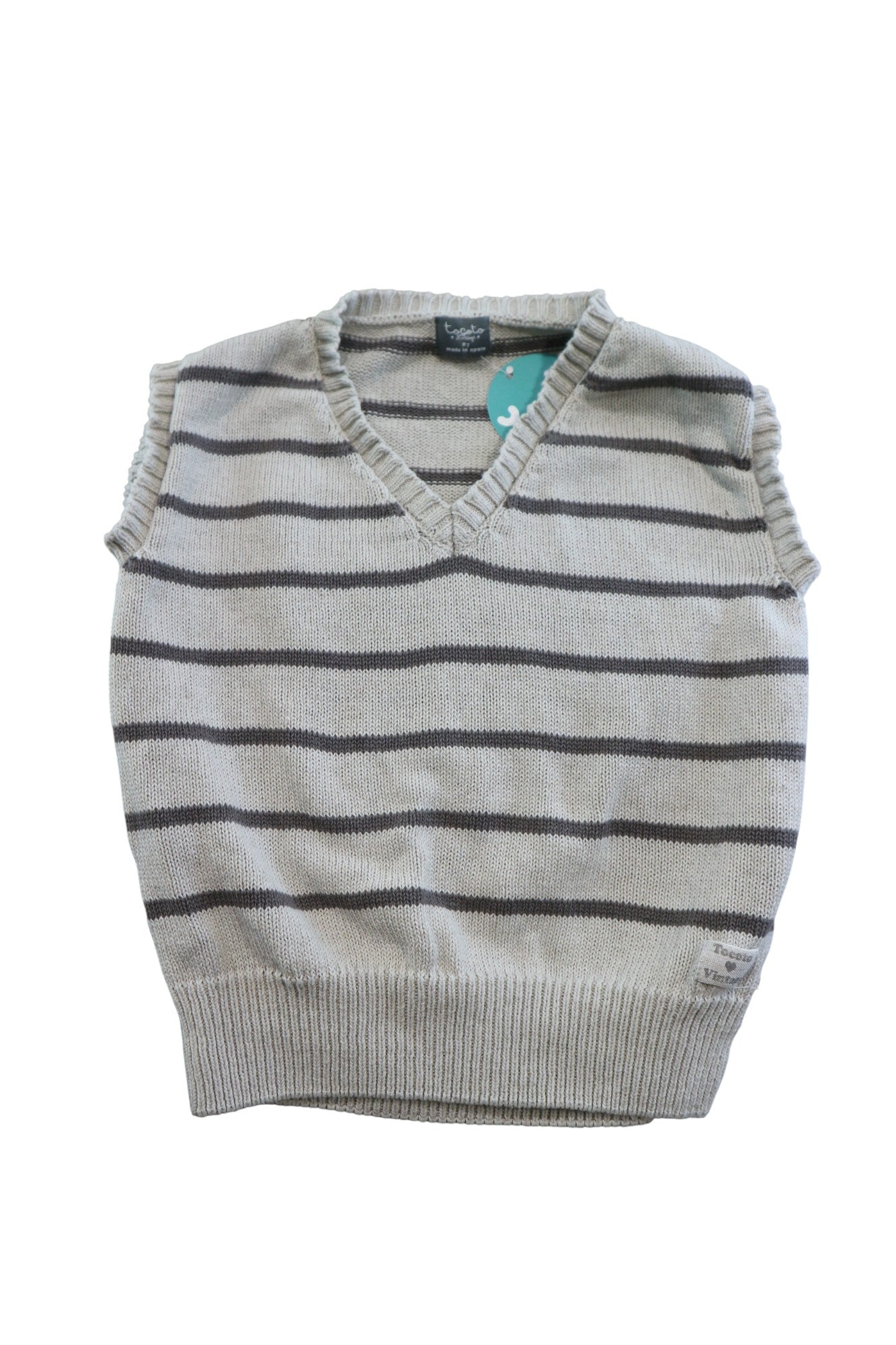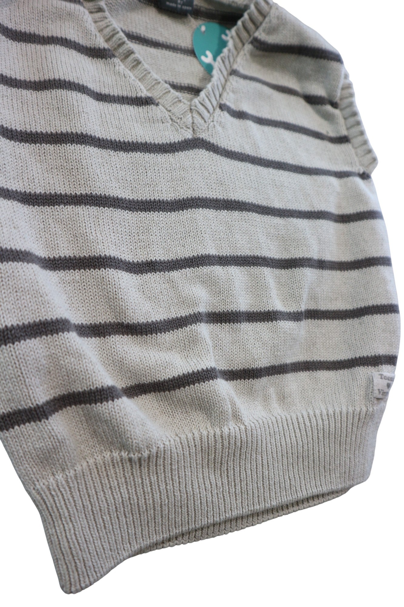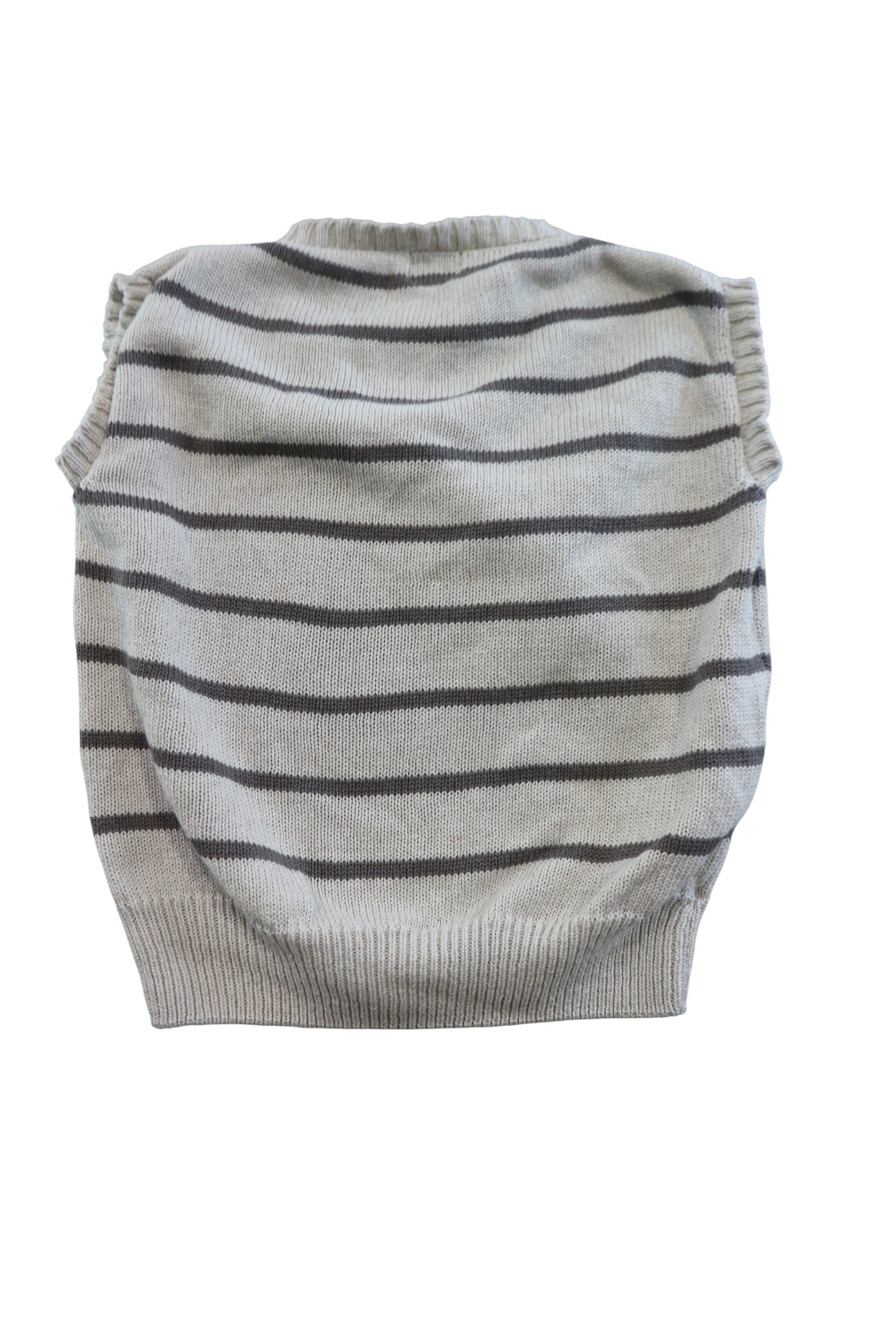 Tocoto Vintage beige knit v neck vest with stripes, size 8. Cotton/linen. Made in Spain.