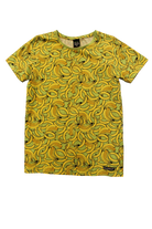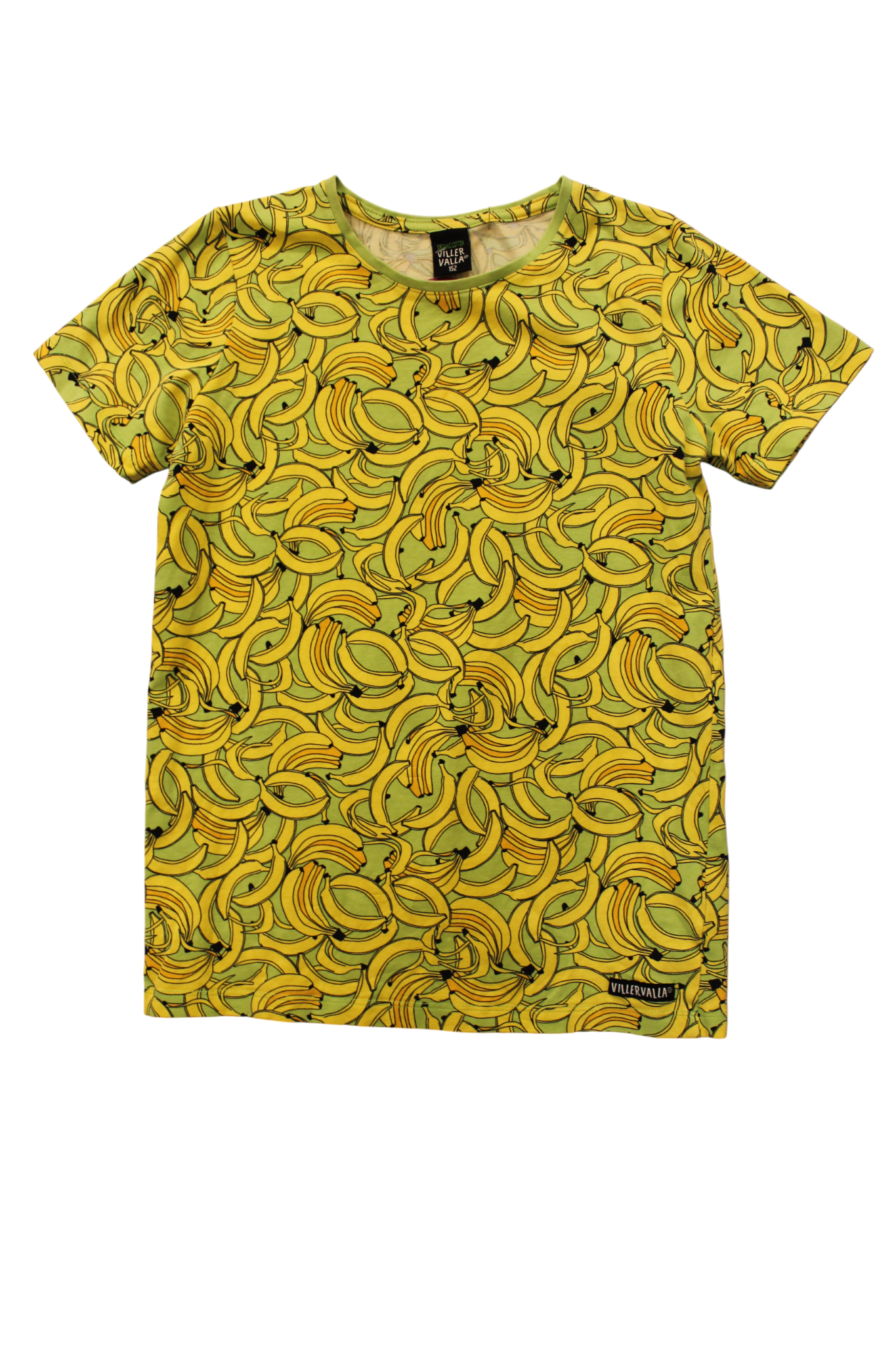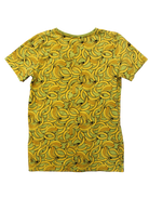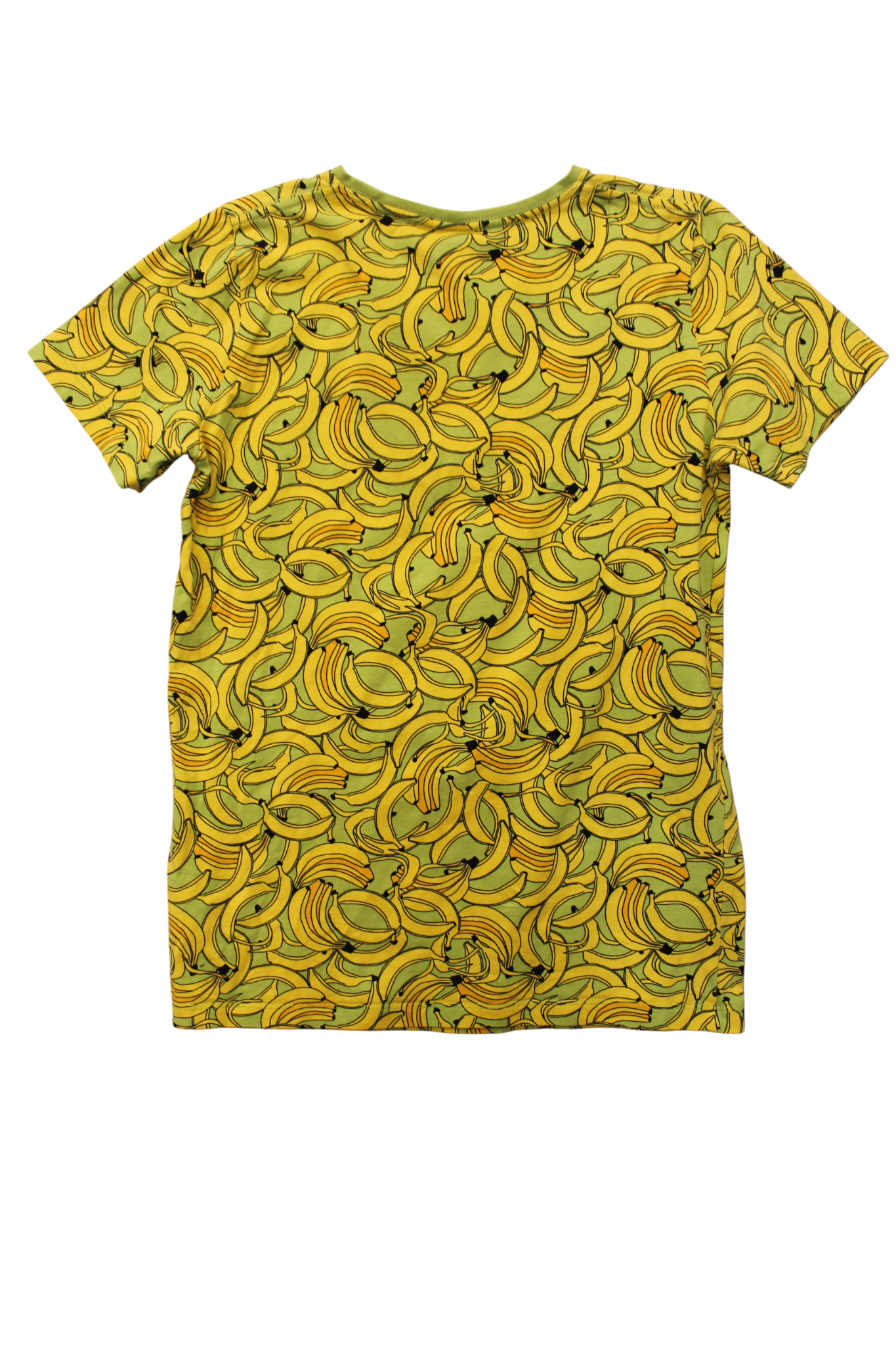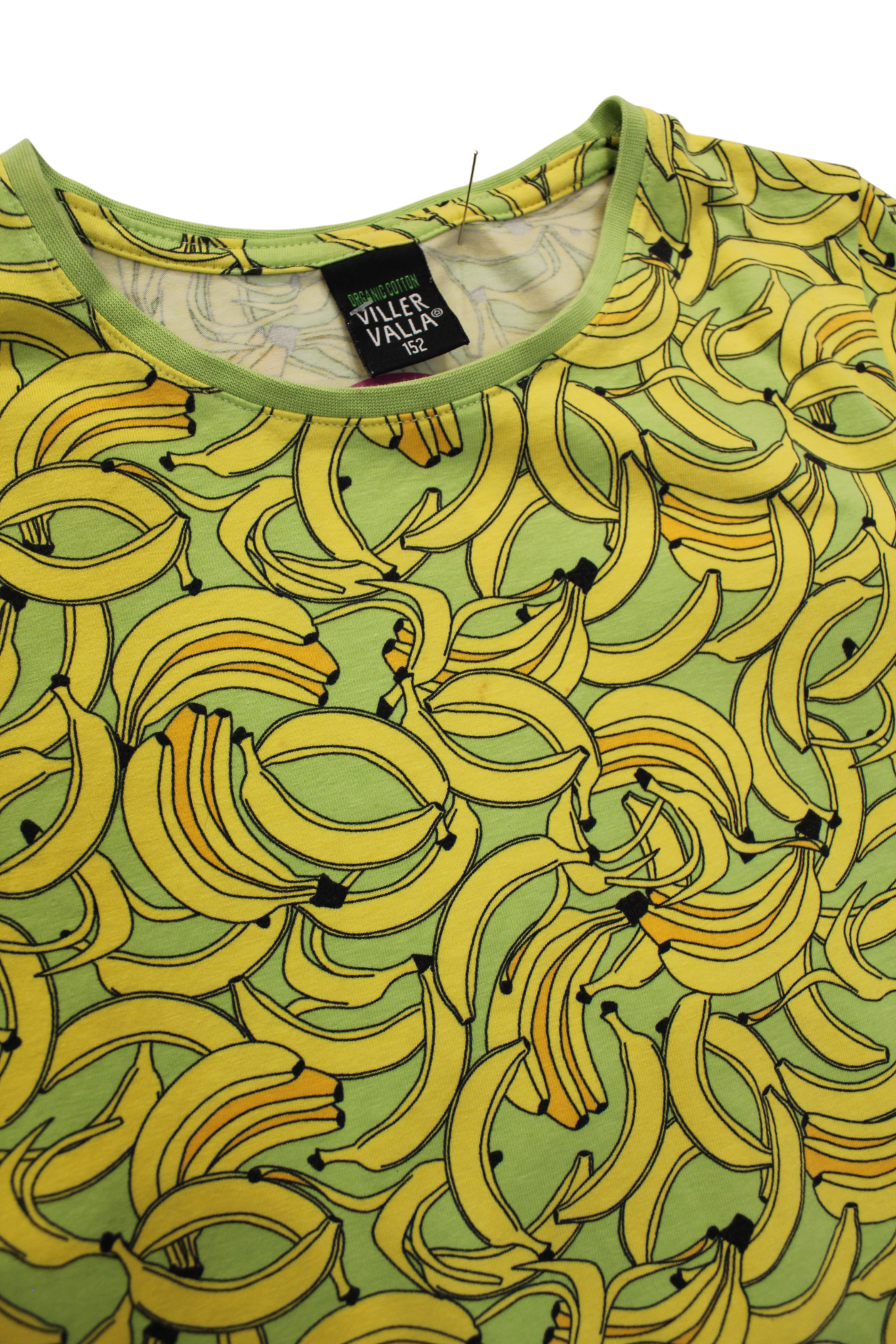 Banana Print Kids T-Shirt Brighten up their wardrobe with this fun banana-printed tee! Crafted from soft, breathable cotton, this Villervalla t-shirt brings a splash of fruity colour and cheeky personality to everyday outfits. The relaxed fit ensures maximum comfort for running, playing, and growing, while the vibrant print keeps things cheerful and quirky. Perfect for mixing and matching with their favourite bottoms. Good condition apart from a small mark on the front.