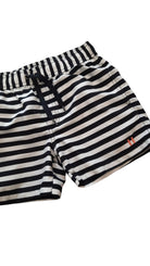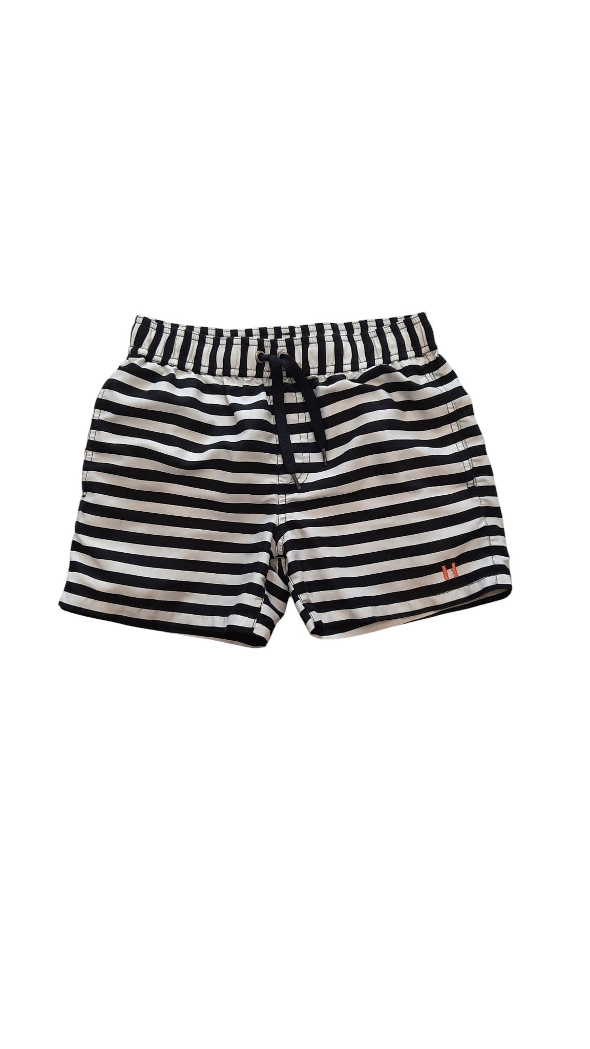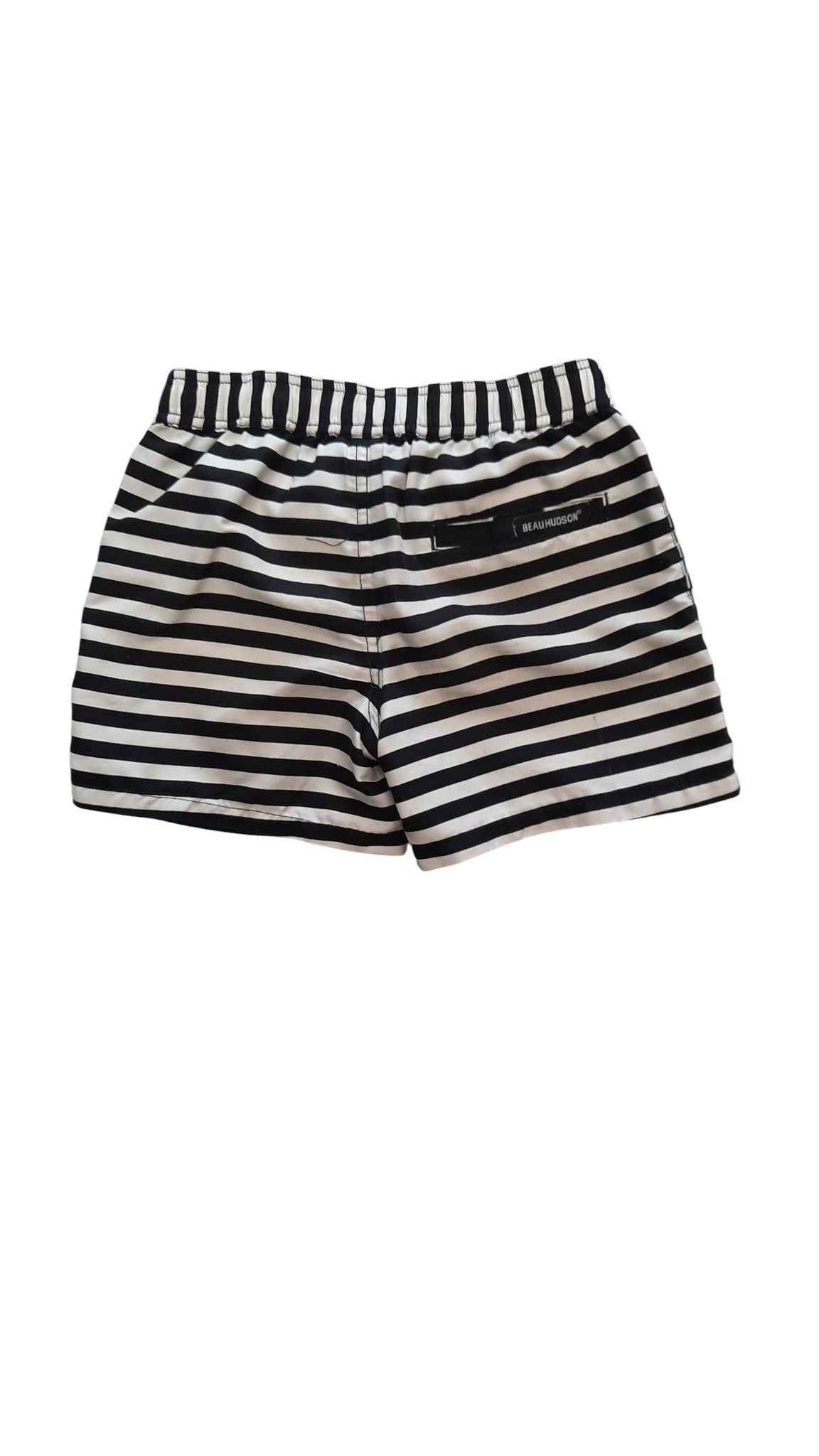 Beau Hudson black and white stripe boardshorts, size 7. Polyester.