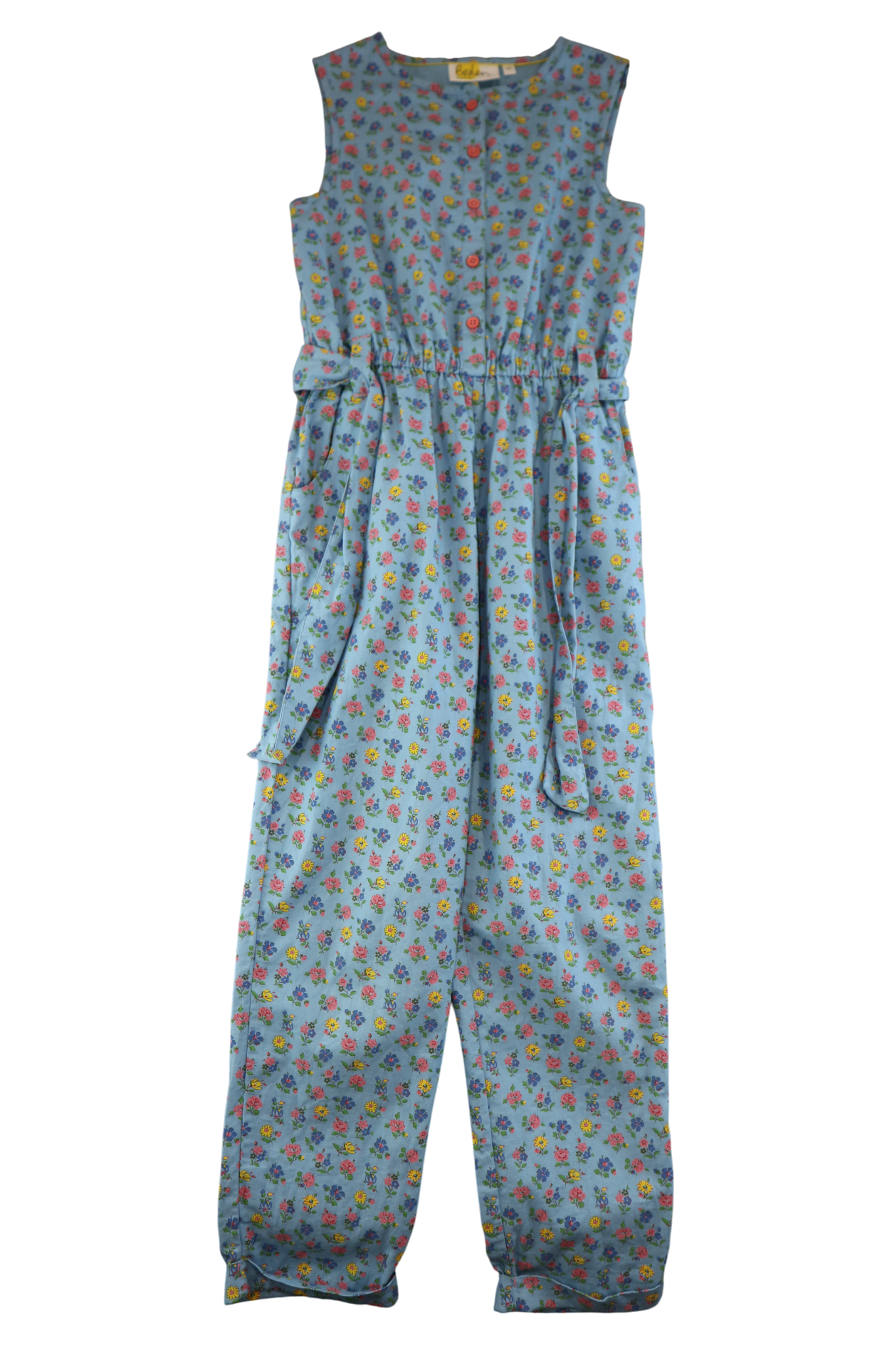 The Boden Playsuit combines a vibrant blue floral print with a sleeveless design and a matching belt for a playful, stylish look. Perfect for sunny days, it offers comfort and freedom to move, making every playtime a blossoming adventure. Great condition.