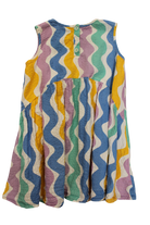 Whimsical squiggle-print summer dress that's bursting with playful energy! Perfect for warm weather adventures, this dress features a fun, eye-catching design that celebrates creativity and imagination. The light, breathable fabric keeps kids cool and comfortable during sunny days, while the relaxed fit allows plenty of room for movement and play. Easy to throw on and even easier to love, it's the dress that makes every day feel like an adventure! Good condition, some wear on the snaps at the back of the neck and slight wash fade.