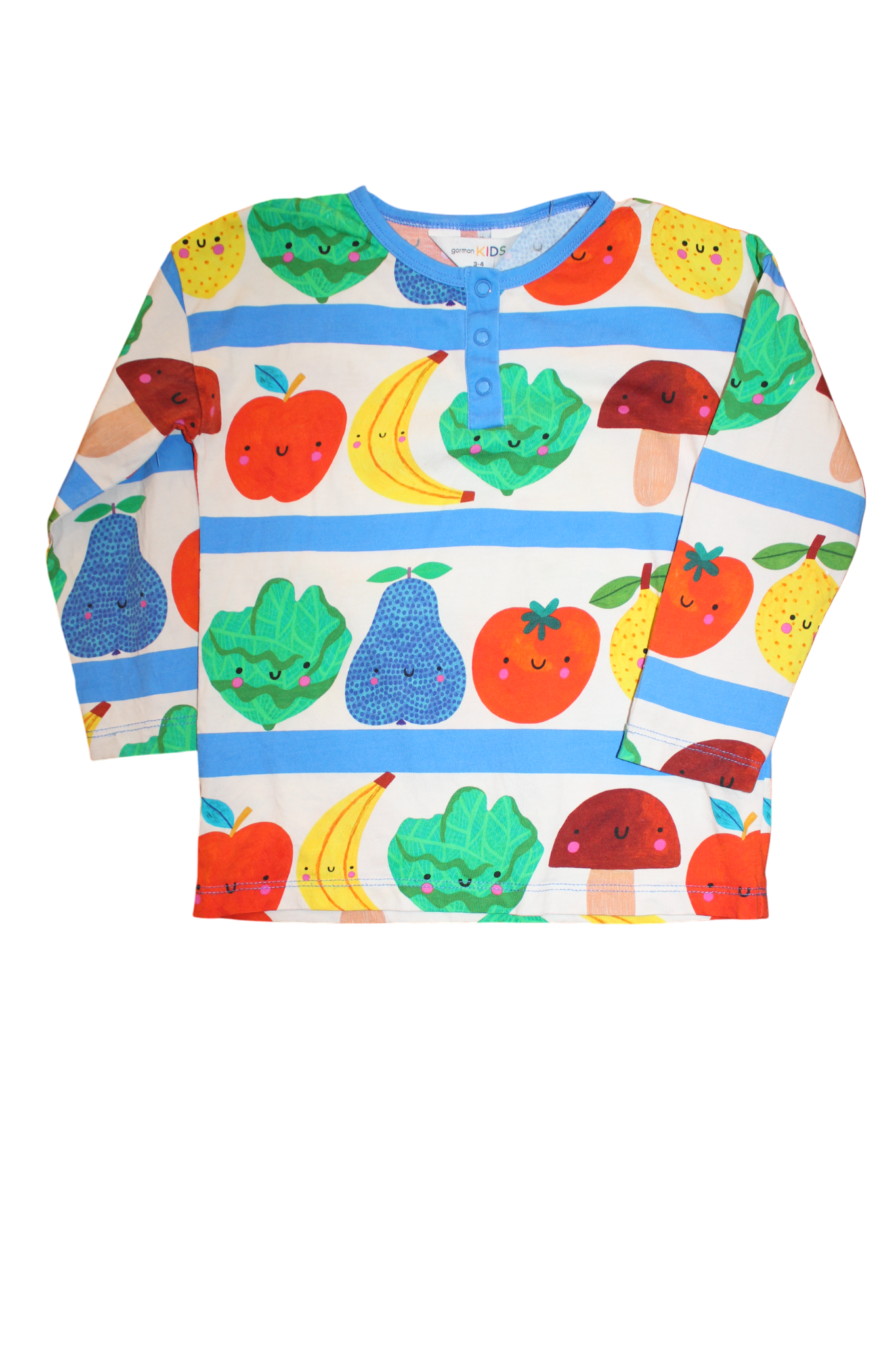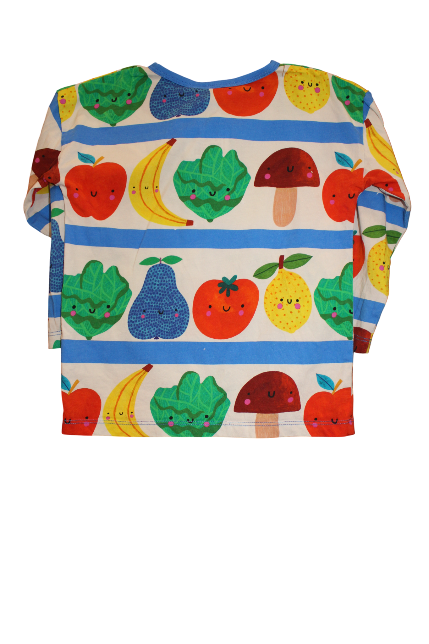 Brighten up playtime with this cheerful veggie-print long-sleeve top! Perfect for little ones who love their greens (or at least wearing them), this cosy layer features a fun, colourful vegetable design that sparks conversations and smiles. The long sleeves provide extra warmth for cooler days, making it ideal for year-round wear. Soft, comfortable fabric keeps kids happy all day long, whether they're at school, the park, or snuggled up at home. A playful essential that makes getting dressed an adventure! Very good condition.