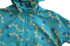 Drop shoulder teal Ant wind- breaker. With a hood, two front pockets and a centre front opening zip. Gathered waistband for comfy fit for perfect play.