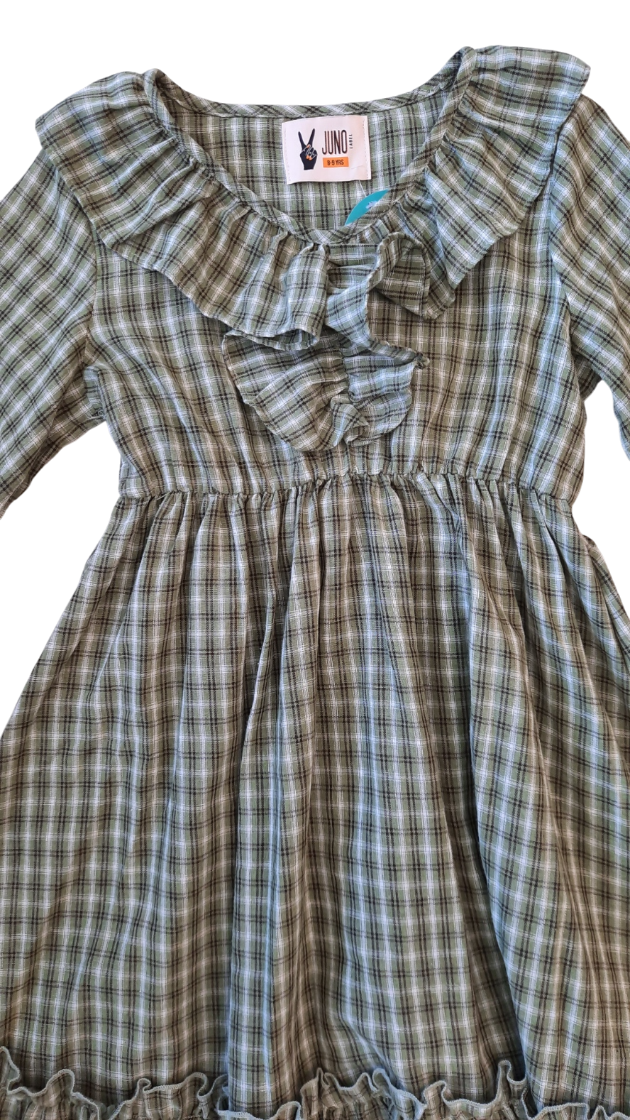 This charming Juno Label dress has an elasticated waist and cuffs that allow for comfort and ease of movement, while its gorgeous ruffle detailing and tartan style print add flair and style. Made from lightweight cotton to keep you cool and comfortable all day long, this piece can be used for everyday wear or special occasions.