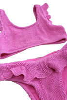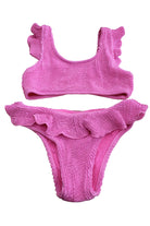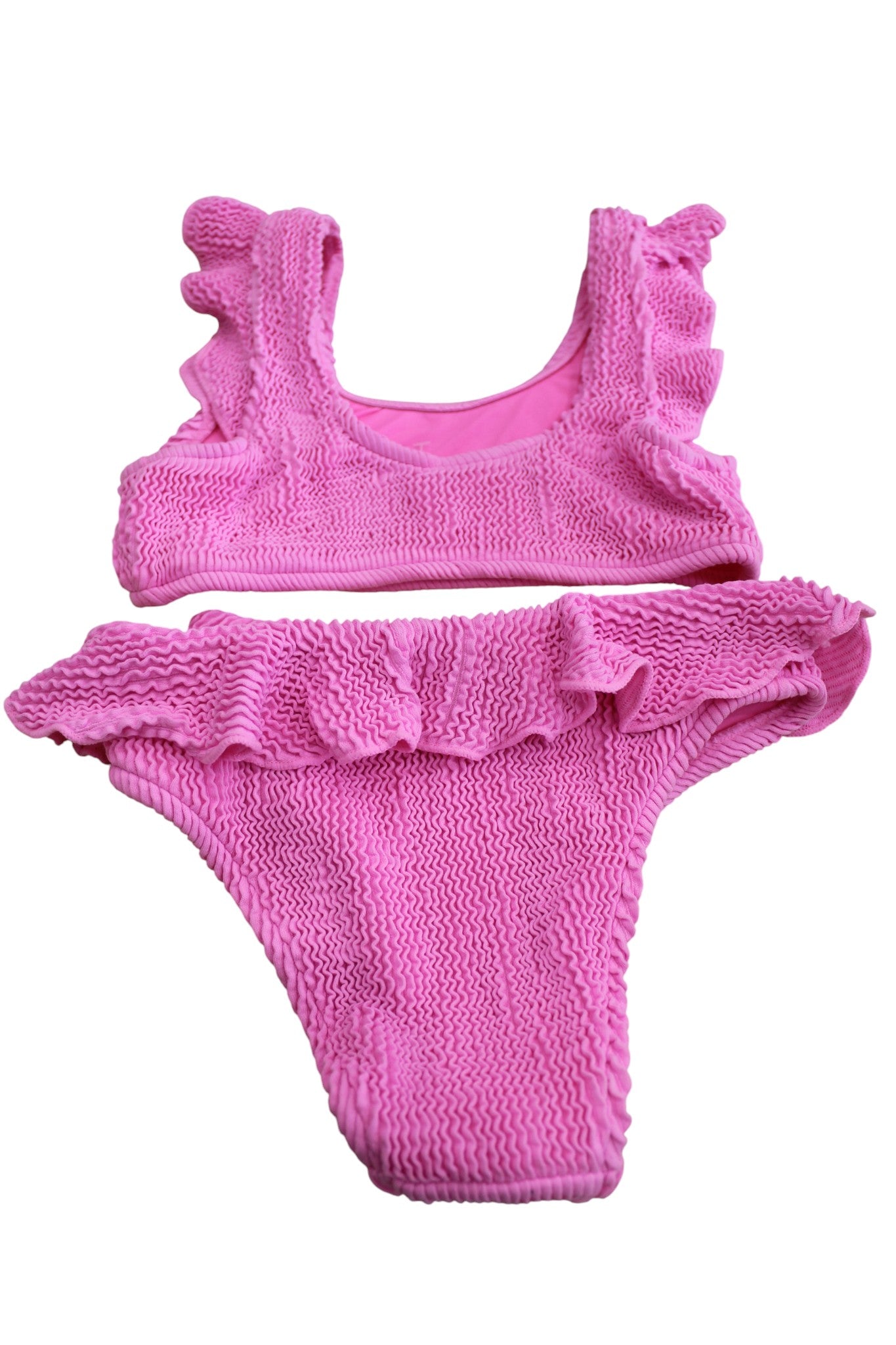 Lil Goldie hot pink ruched bikini set in size 4-5yrs. Nylon/spandex.