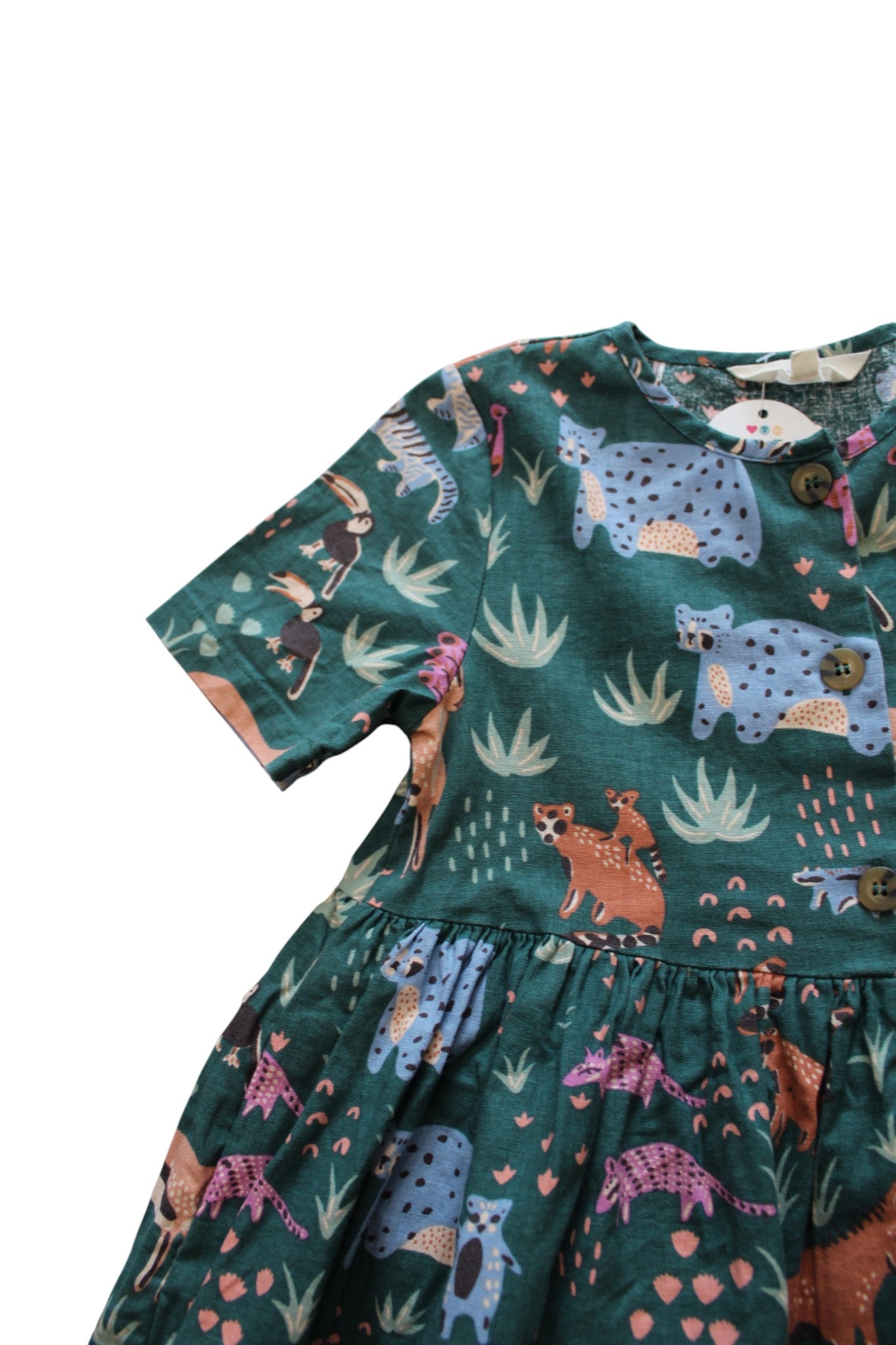 Step into adventure with the Little Princess Highway Dress in deep jungle green, size 4. This playful dress brings the spirit of the wild to your little one's wardrobe, combining comfort and vibrant style. Perfect for jungle-themed fun or everyday play, it lets imagination run free while keeping your child cozy and ready for every adventure.