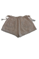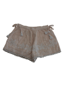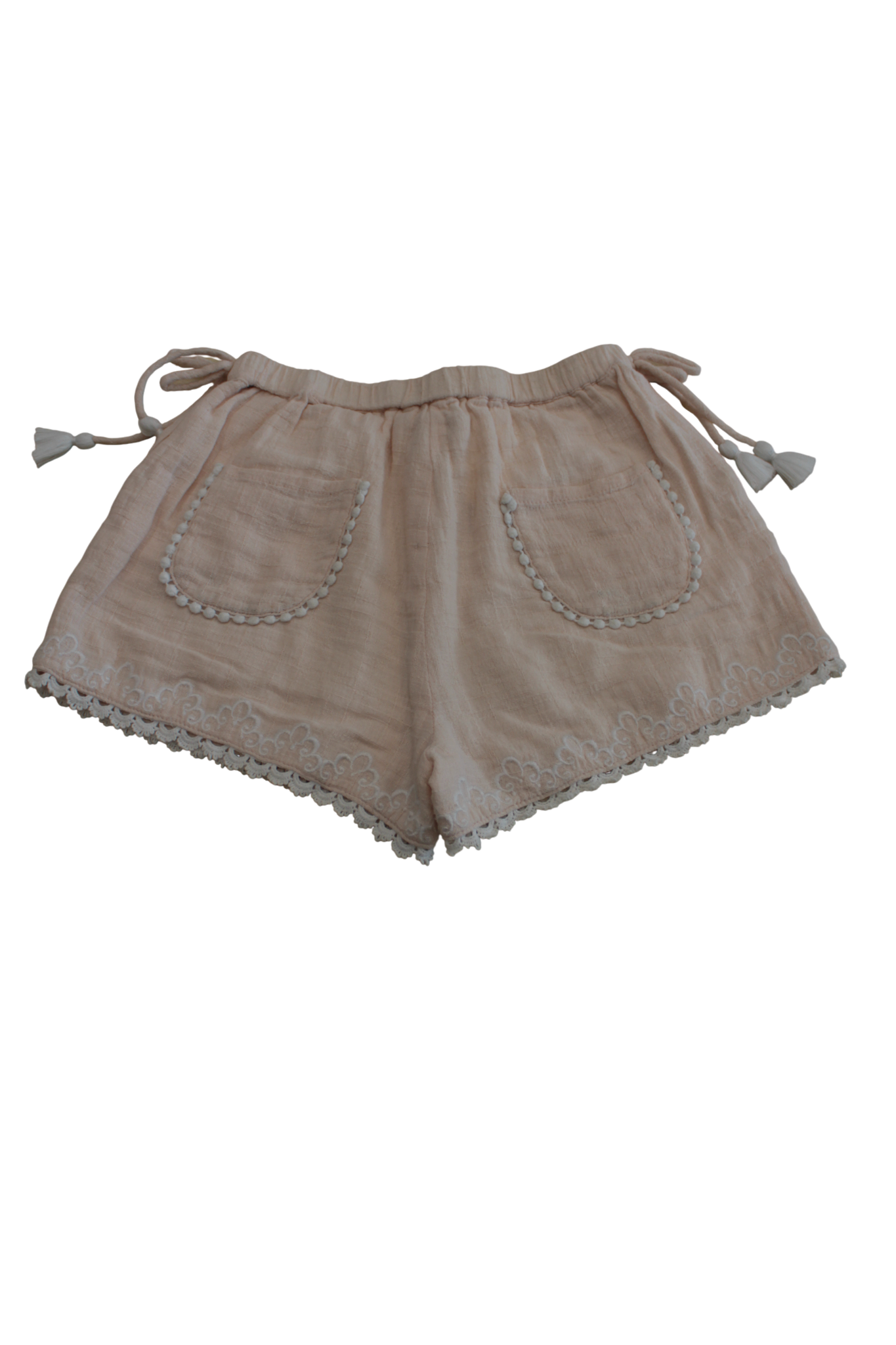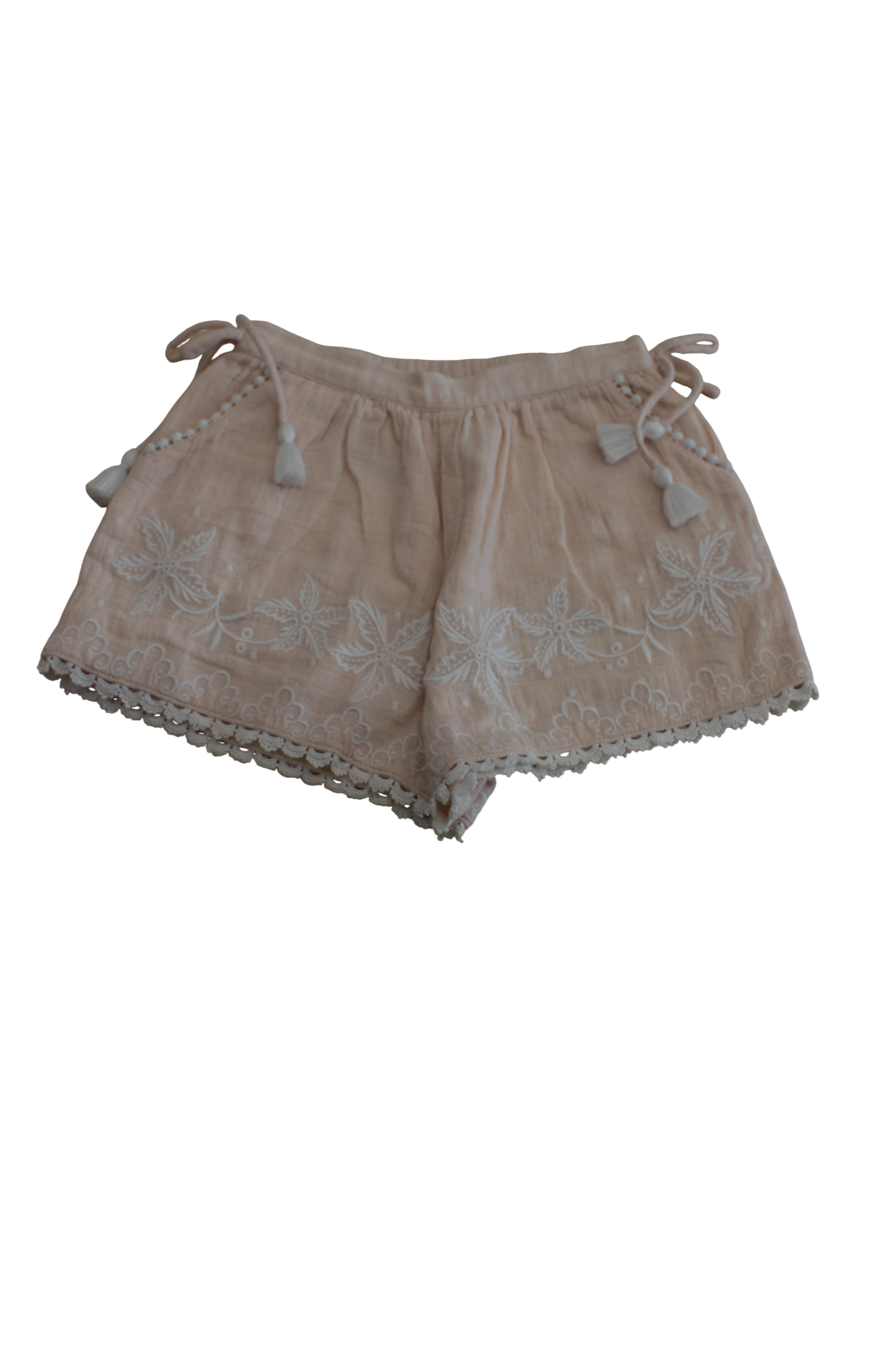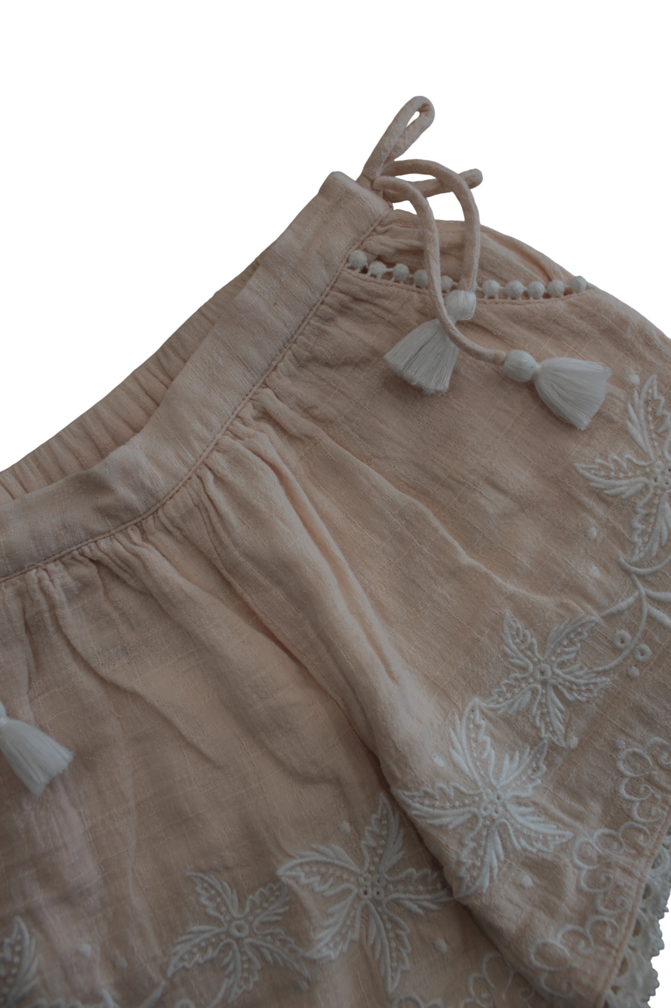 These charming shorts feature delicate lace detailing that adds a touch of elegance to everyday wear. Perfect for warm days, they're designed with comfort and style in mind for active kids. The soft light pink hue pairs well with everything! Very good preloved condition.