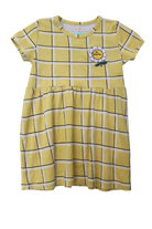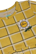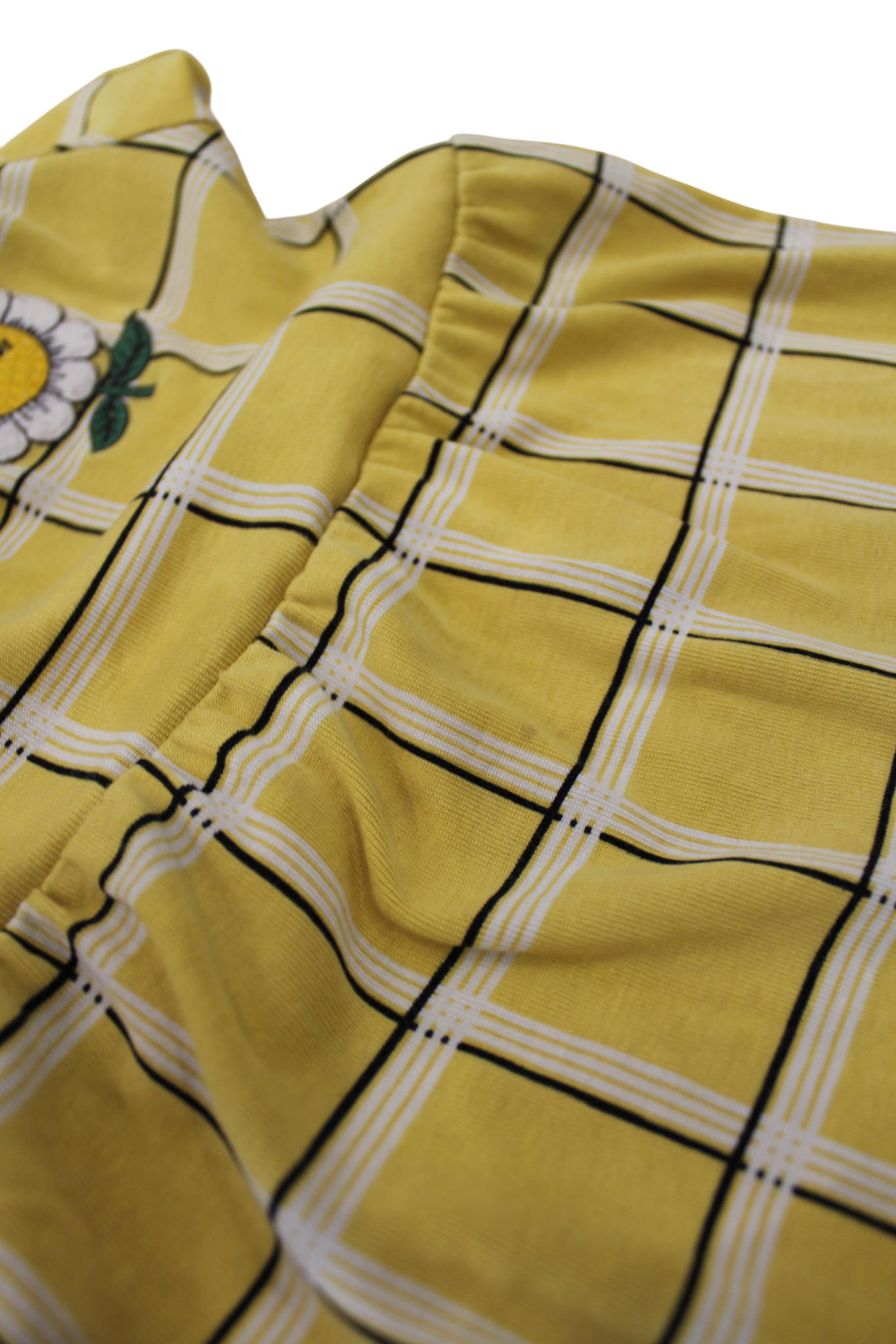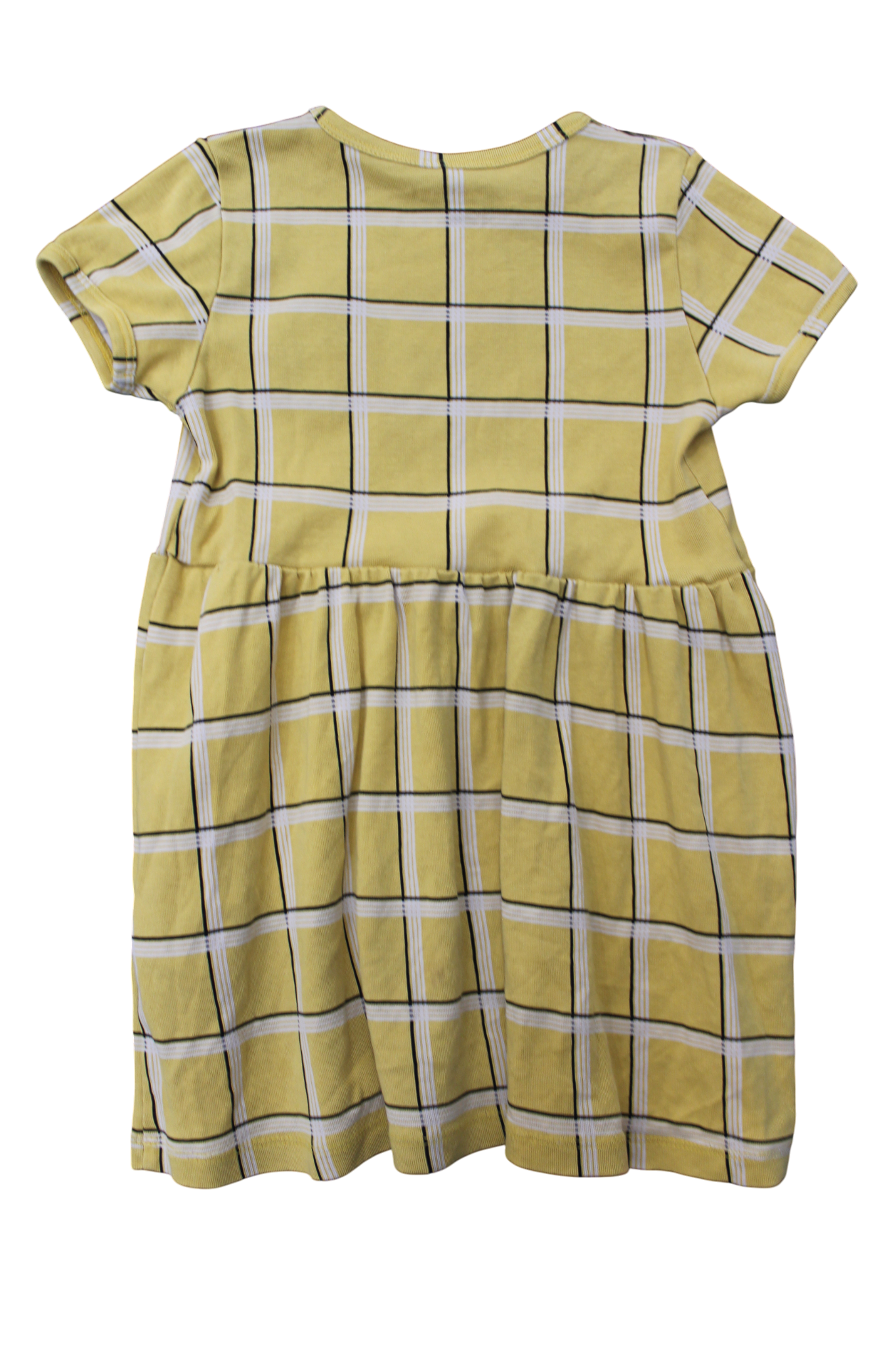The Mini Rodini kids’ dress features a cheerful yellow check pattern adorned with a charming daisy applique, creating a fresh and playful look. Crafted for comfort and style, this dress is perfect for sunny days and special occasions alike, adding a bright and joyful touch to your child’s wardrobe. Size 92-104 (1-3 years). Fair condition, some wear and a few marks.