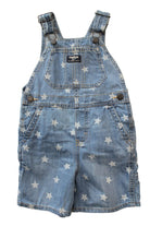 These OshKosh shortalls feature a playful star print on durable denim, making them perfect for active kids. Designed for comfort and easy movement, they combine classic style with practical wearability, ensuring your child looks cute and feels great all day long. Ideal for everyday adventures and casual outings. Very good condition.