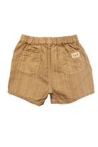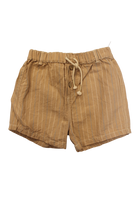Striped shorts bursting with character in brown, cream, and blue that make getting dressed fun! Made from organic cotton, these comfy shorts are gentle on sensitive skin and kind to the environment. The classic stripe pattern works with everything, while the relaxed fit gives kids room to move, play, and be themselves. Durable enough for everyday wear and soft enough for all-day comfort. A wardrobe winner that's as practical as it is playful! Very good preloved condition.