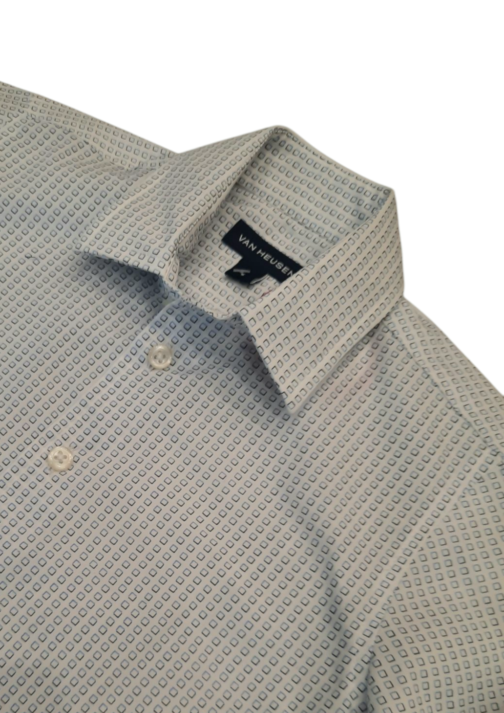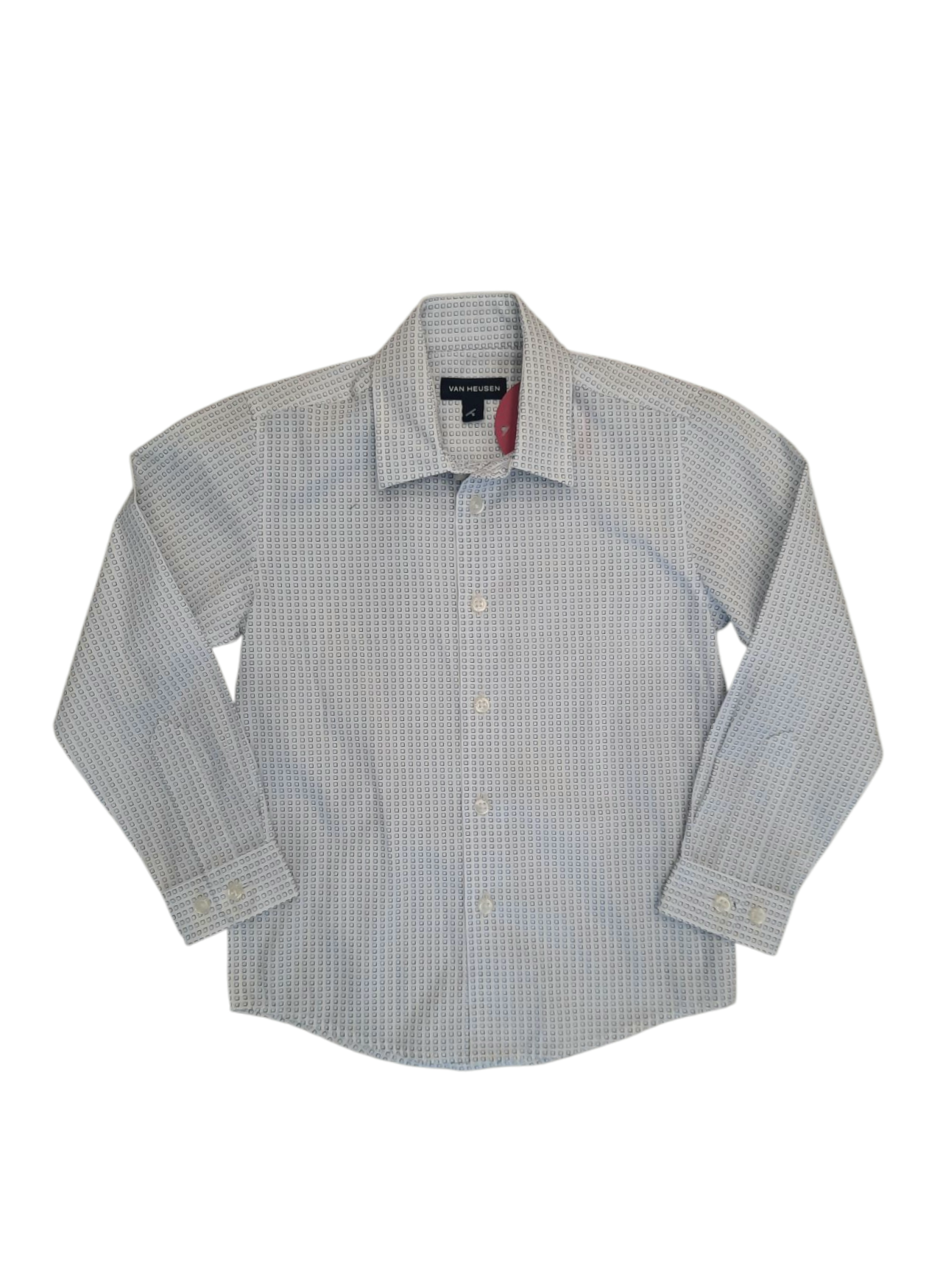 Dress your little one in style with the Van Heusen Long Sleeve Shirt! This kids' white button up shirt features a blue print, perfect for special occasions. Made with high-quality materials, this shirt is comfortable and stylish. Elevate your child's wardrobe with this must-have piece! Very good preloved condition.