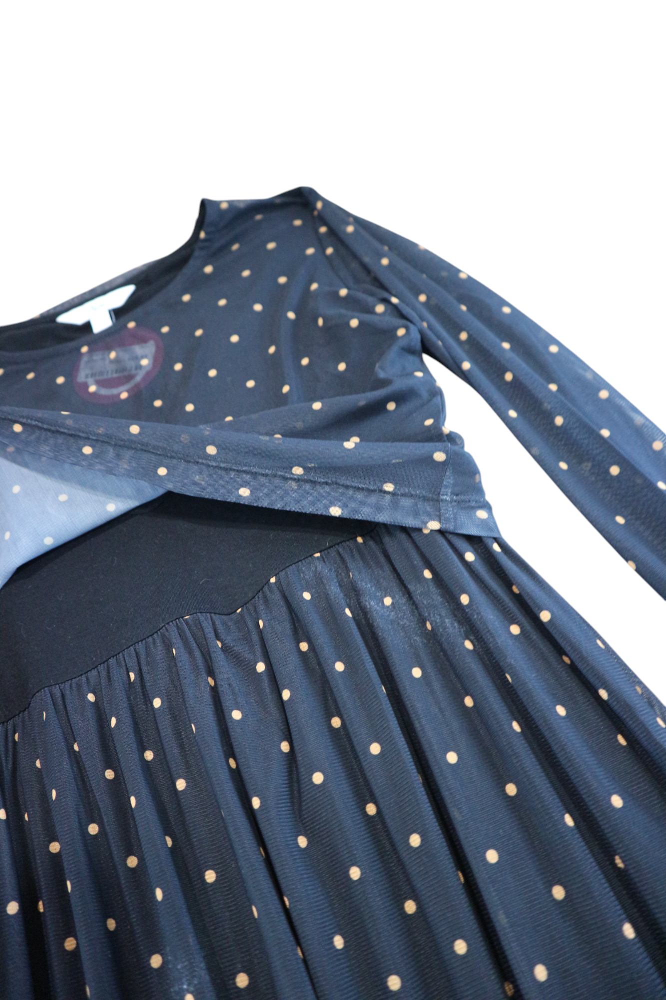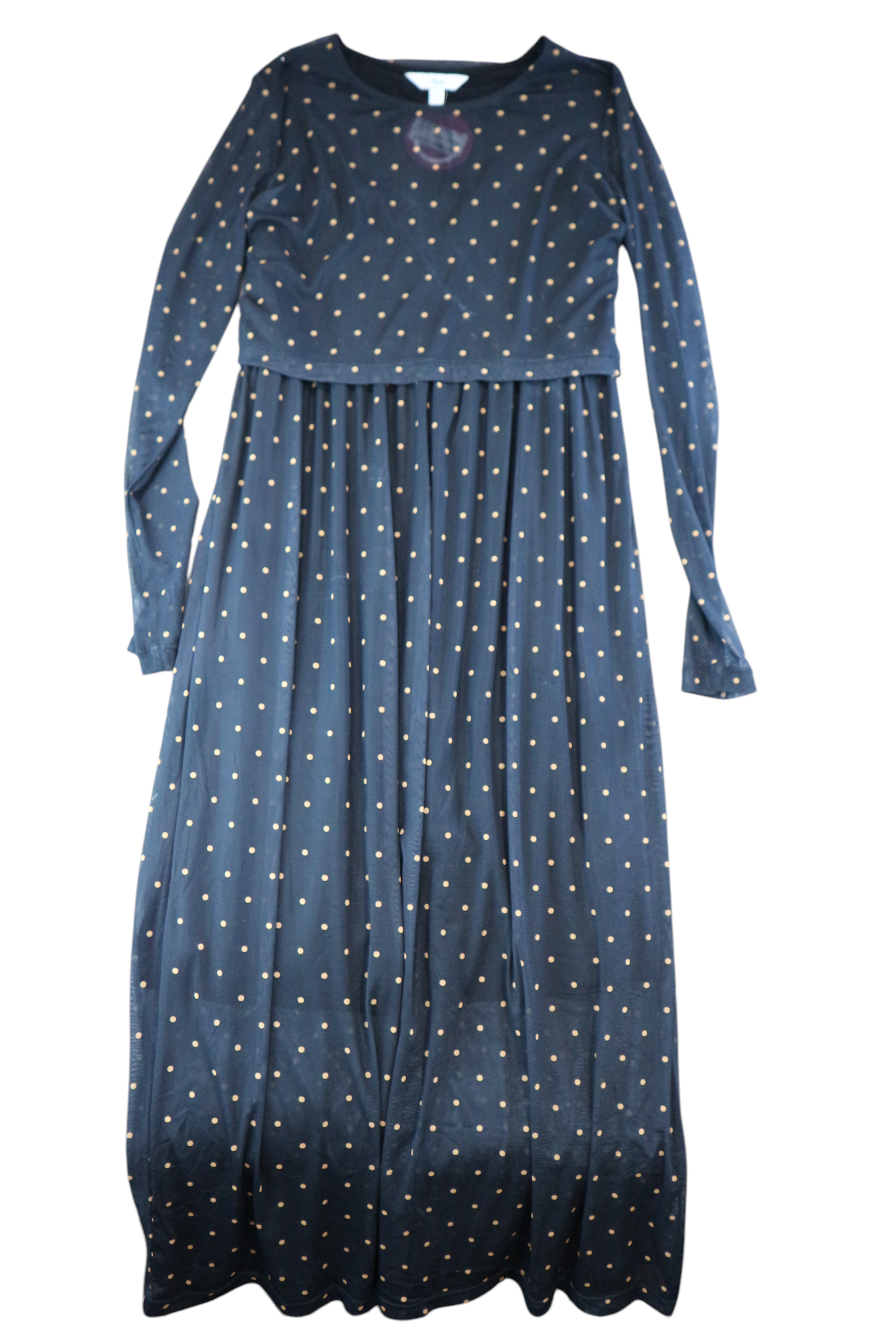 Step out with confidence in this playful Ripe Dress featuring a chic black base layered with a delicate mesh overlay sprinkled with charming brown spots. Perfect for adding a touch of whimsy to your wardrobe, its unique pattern creates an eye-catching look that's perfect for day or night occasions. Designed to flatter in a size Large/14, this dress blends bold style with effortless fun.