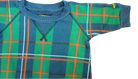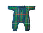 This Kip&Co jumpsuit features a blue and green tartan print crafted from 100% cotton fleece, offering softness and comfort all day long. Designed with a convenient press stud crotch closure, it ensures quick and easy changes, making dressing hassle-free.