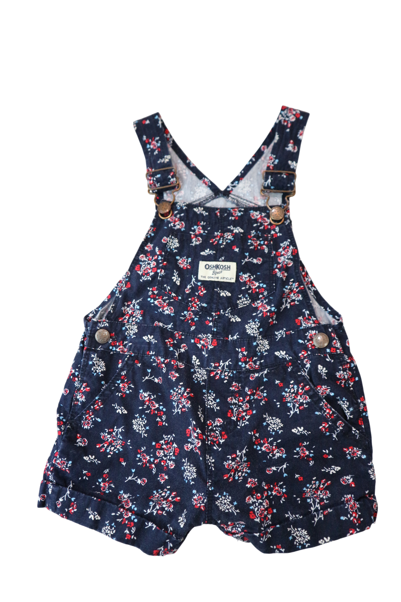 OshKosh navy shortalls with floral print, size 2. 100% cotton.