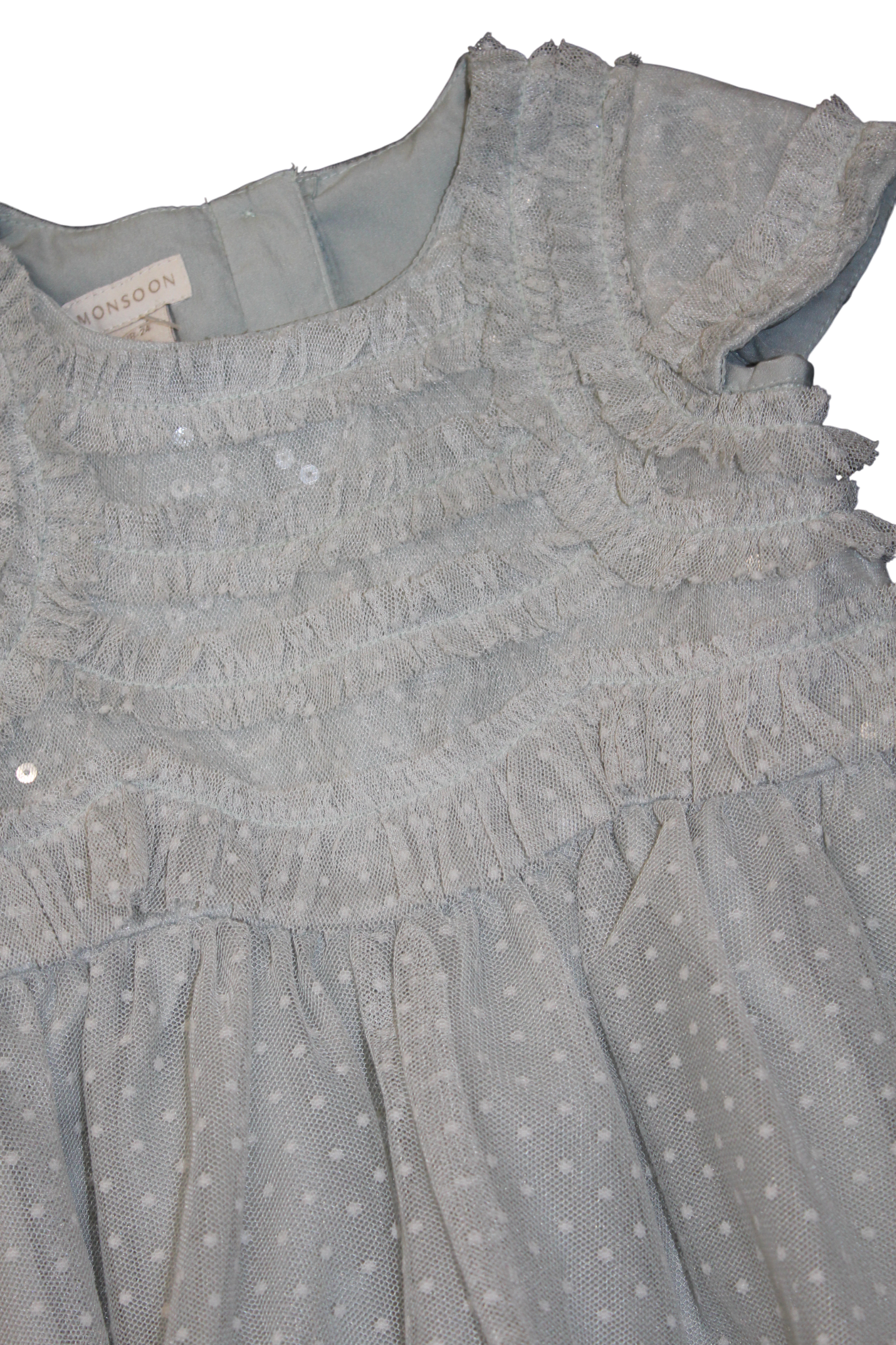 The Monsoon toddler party dress in a soft sage color is crafted from 100% polyester, delivering a lightweight and elegant look perfect for formal occasions. Its delicate design offers your child comfort and style, making it an ideal choice for celebrations and special events. This dress brings a subtle, sophisticated charm to your little one’s wardrobe. Great condition.