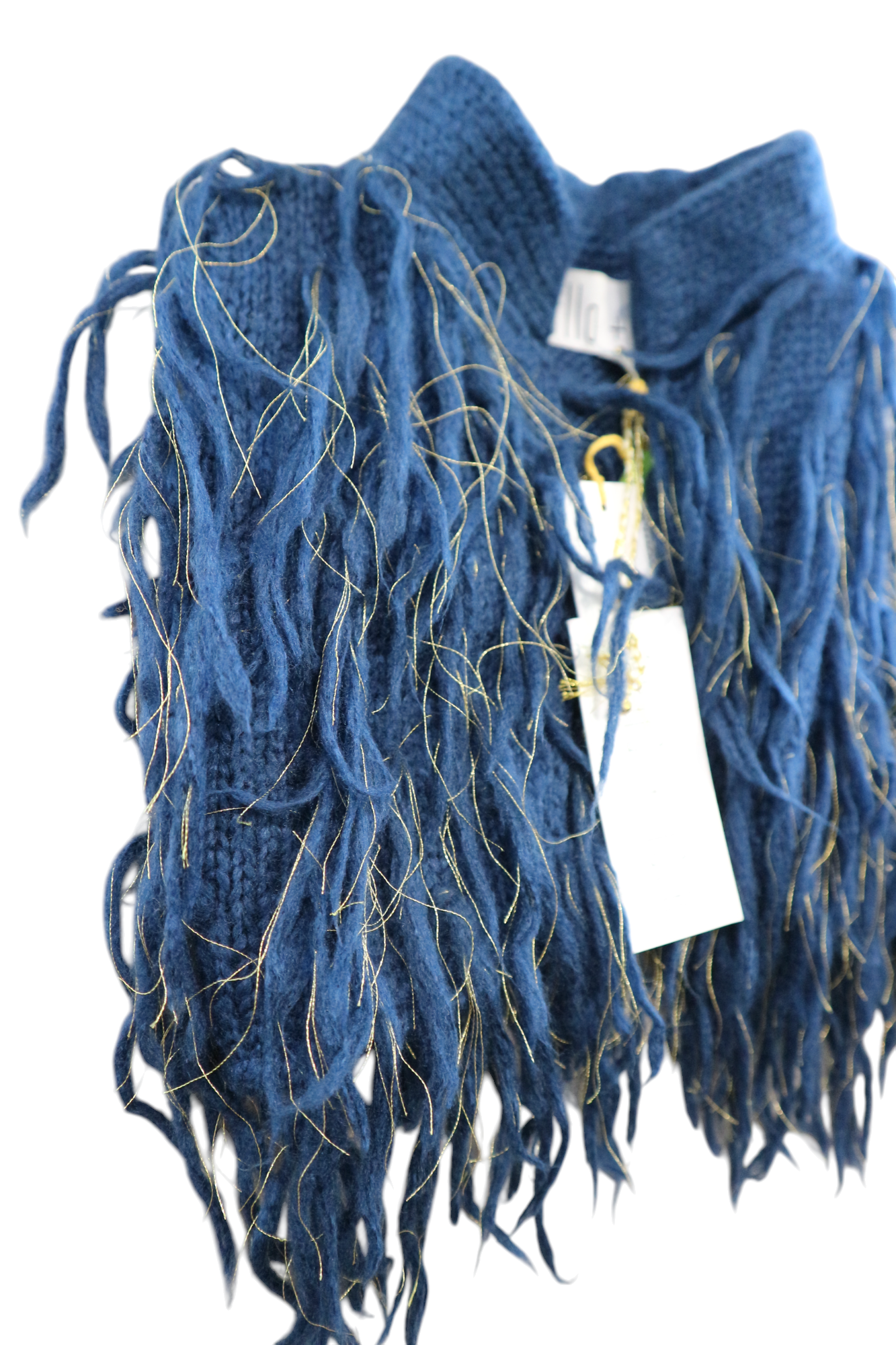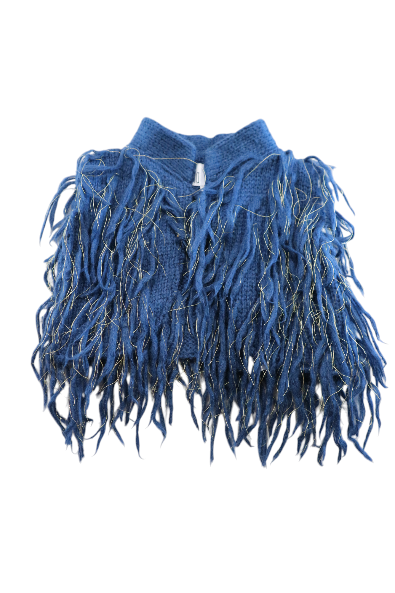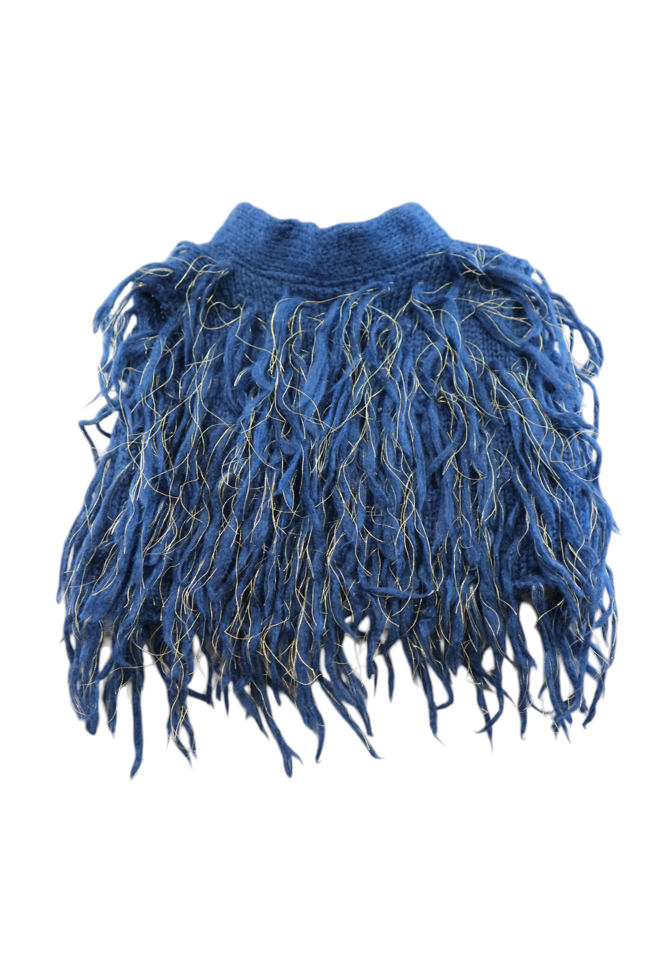 Bella & Lace blue with gold thread shaggy knit vest in size 1-2yrs. Acrylic.