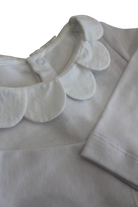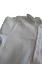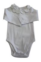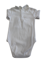 Dress your little one in pure comfort and charm with this white toddler bodysuit featuring a classic woven collar. Soft and gentle on delicate skin, it’s perfect for playtime and cuddles, adding a sweet, playful touch to any outfit. New with tags, but there is a pen mark on the back as shown.