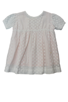 The Goldie & Ace toddler dress combines delicate white cotton lace overlay with a soft pink lining for a charming contrast that’s both elegant and comfortable. Designed for your little one’s special moments, this dress offers breathable fabric and a graceful silhouette, perfect for celebrations or everyday wear. It’s a timeless piece that adds a touch of sweetness to any occasion. Good condition, slight wash fade and wear.