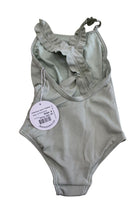 One-piece sage green toddler swimwear. Ruffled straps. Polyamide/spandex blend. New with tags!
