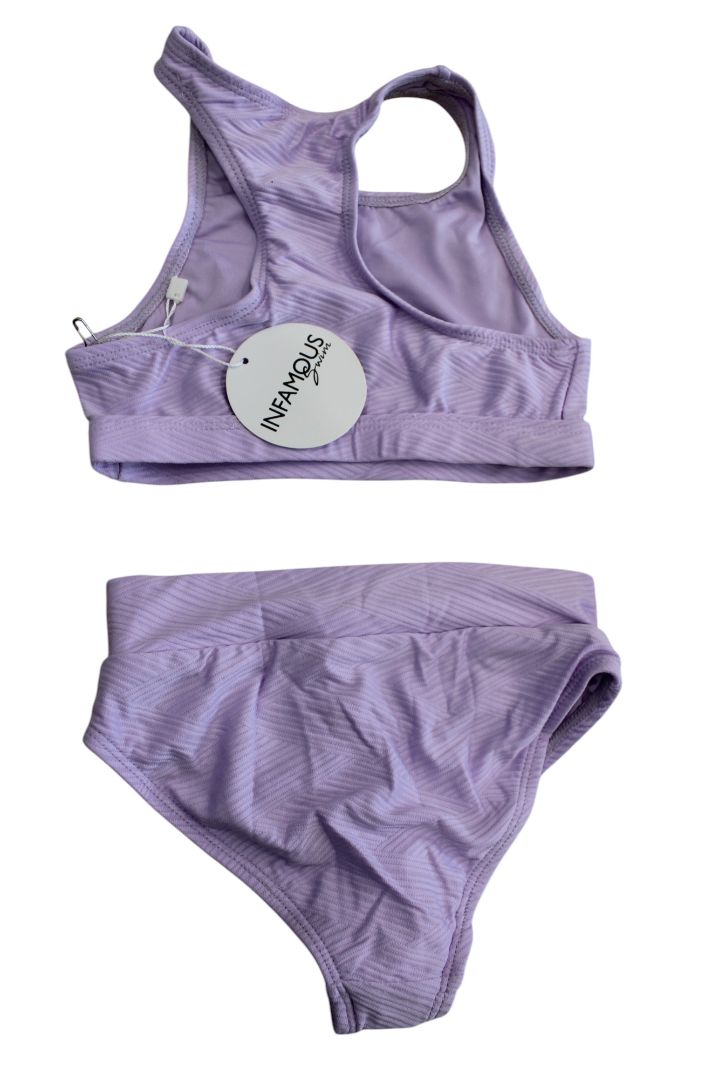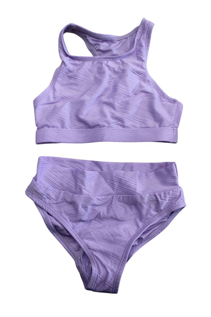 Two-piece lilac toddler swimwear. Racerback style. Polyamide/spandex blend. New with tags!