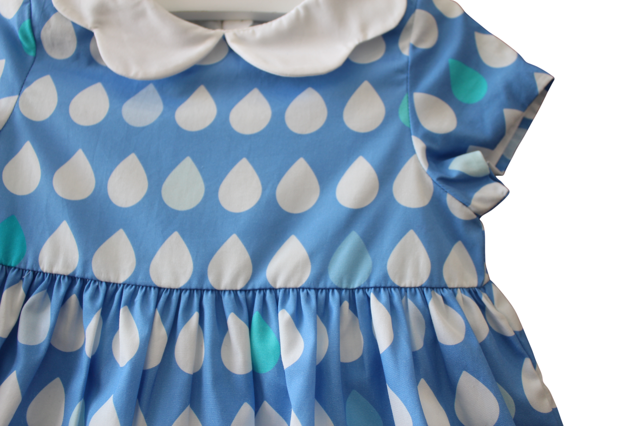This charming Jacadi dress features a delightful raindrop print. Designed with a collar and fully lined with soft organic cotton, it ensures comfort and breathability all day long. Perfect for playful days and special occasions alike!