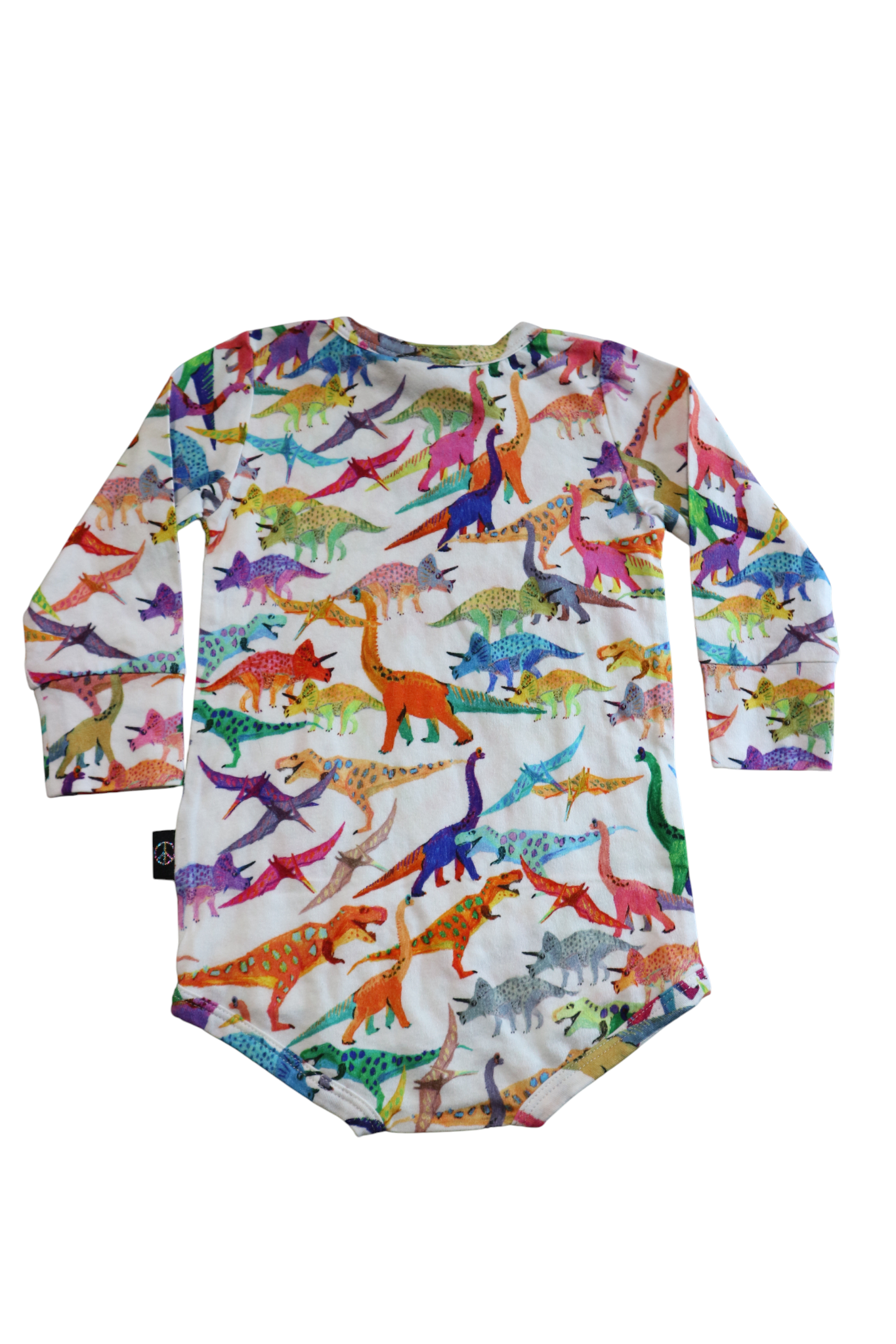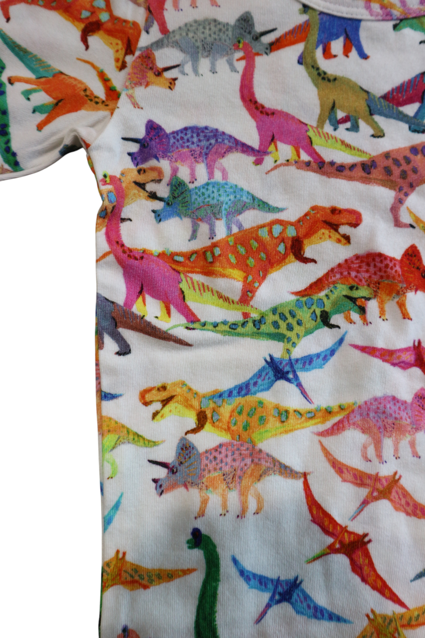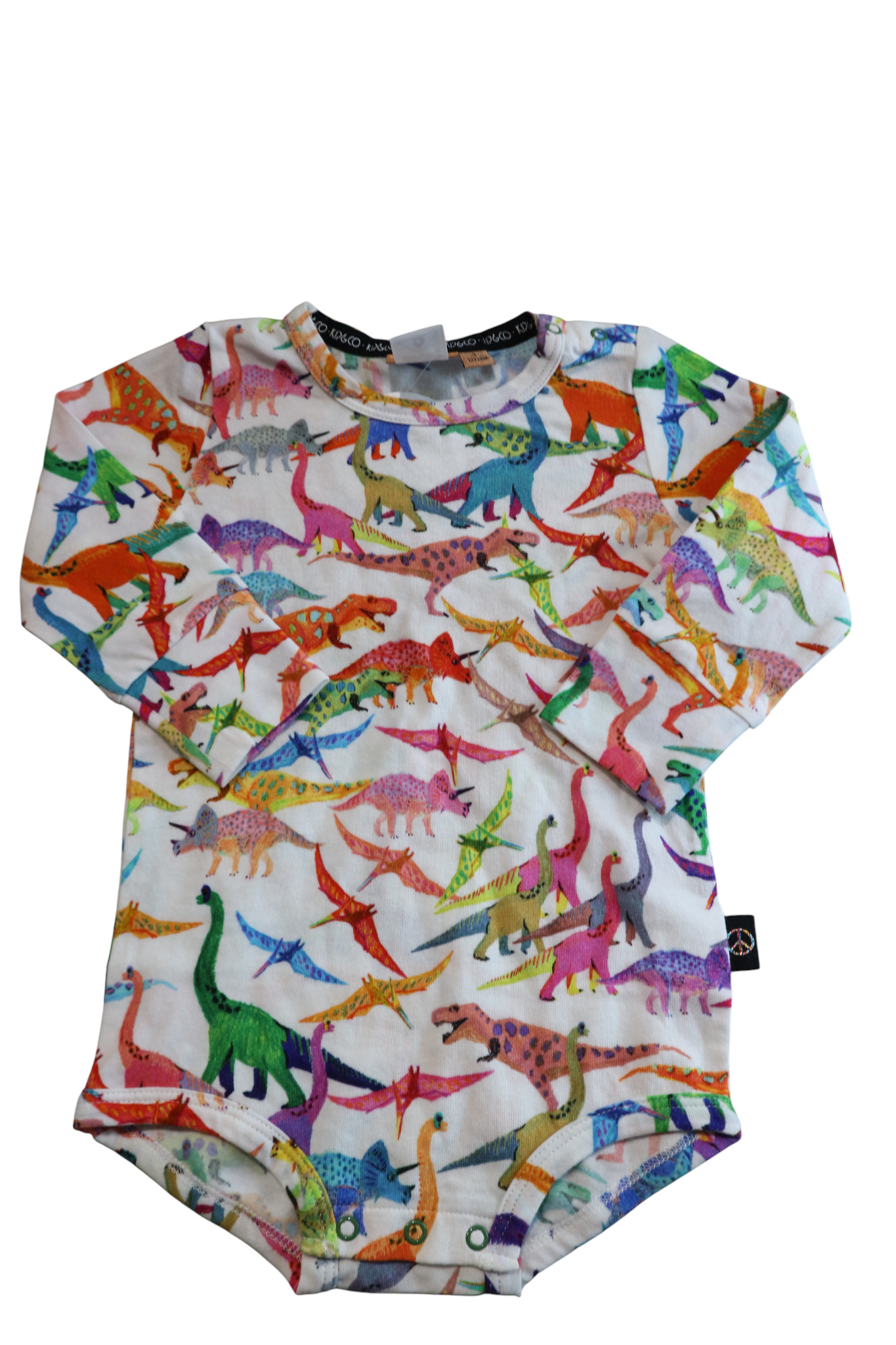 Add a roar of fun to your little one’s day with the Kip & Co Multi Dino Bodysuit in size 1. Bursting with colorful dinosaur prints, this playful bodysuit offers cozy comfort and easy dressing—perfect for tiny explorers ready for adventure!