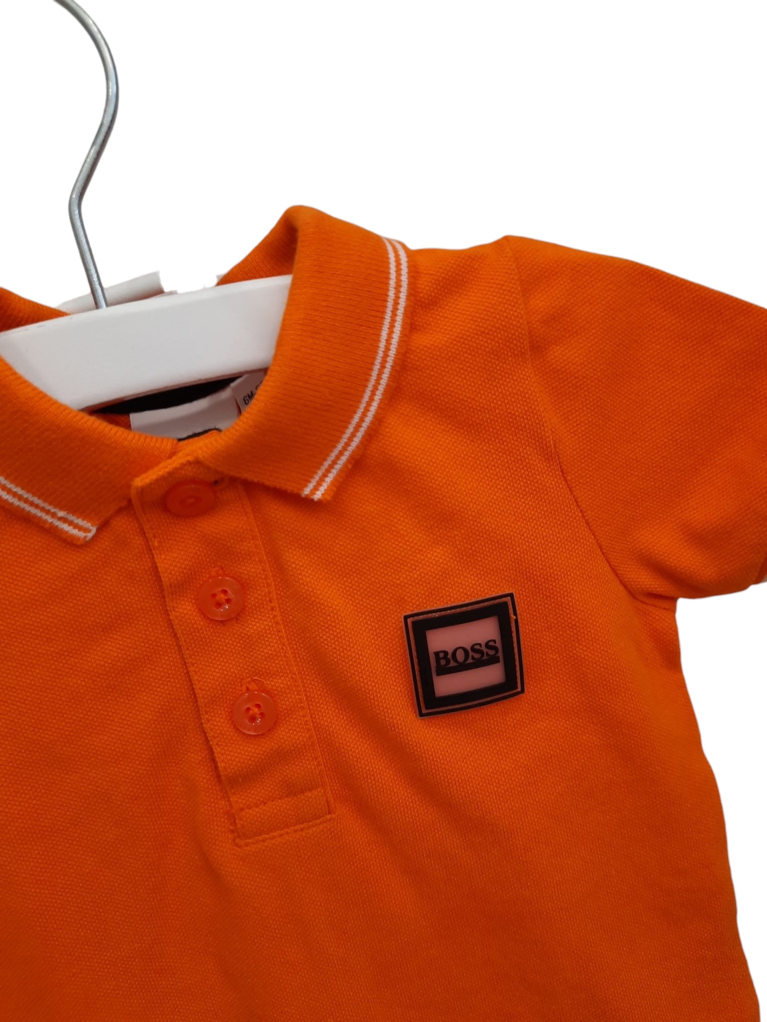 This vibrant orange BOSS polo shirt is perfect for your little one! Made with high-quality materials, this polo shirt is both stylish and comfortable. It's a great addition to any baby's wardrobe and is sure to make a statement. Elevate your baby's style with this must-have shirt!