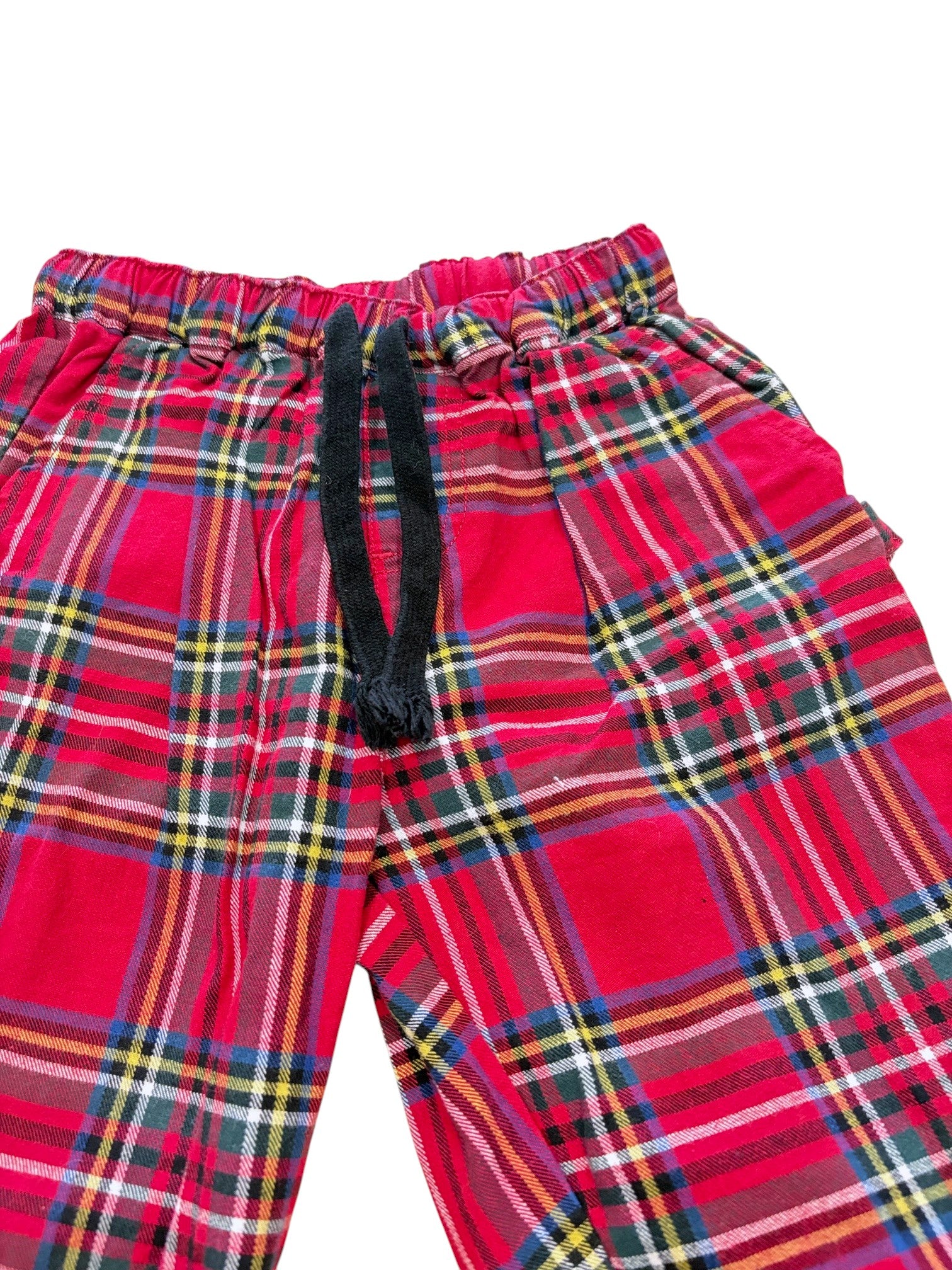 Get ready for adventure in these vibrant red tartan pants! With a relaxed fit and comfy elastic waistband plus drawstring, they're perfect for active kids who need room to move and play. Crafted from 100% breathable cotton, they're durable enough for everyday wear and easy to care for.
