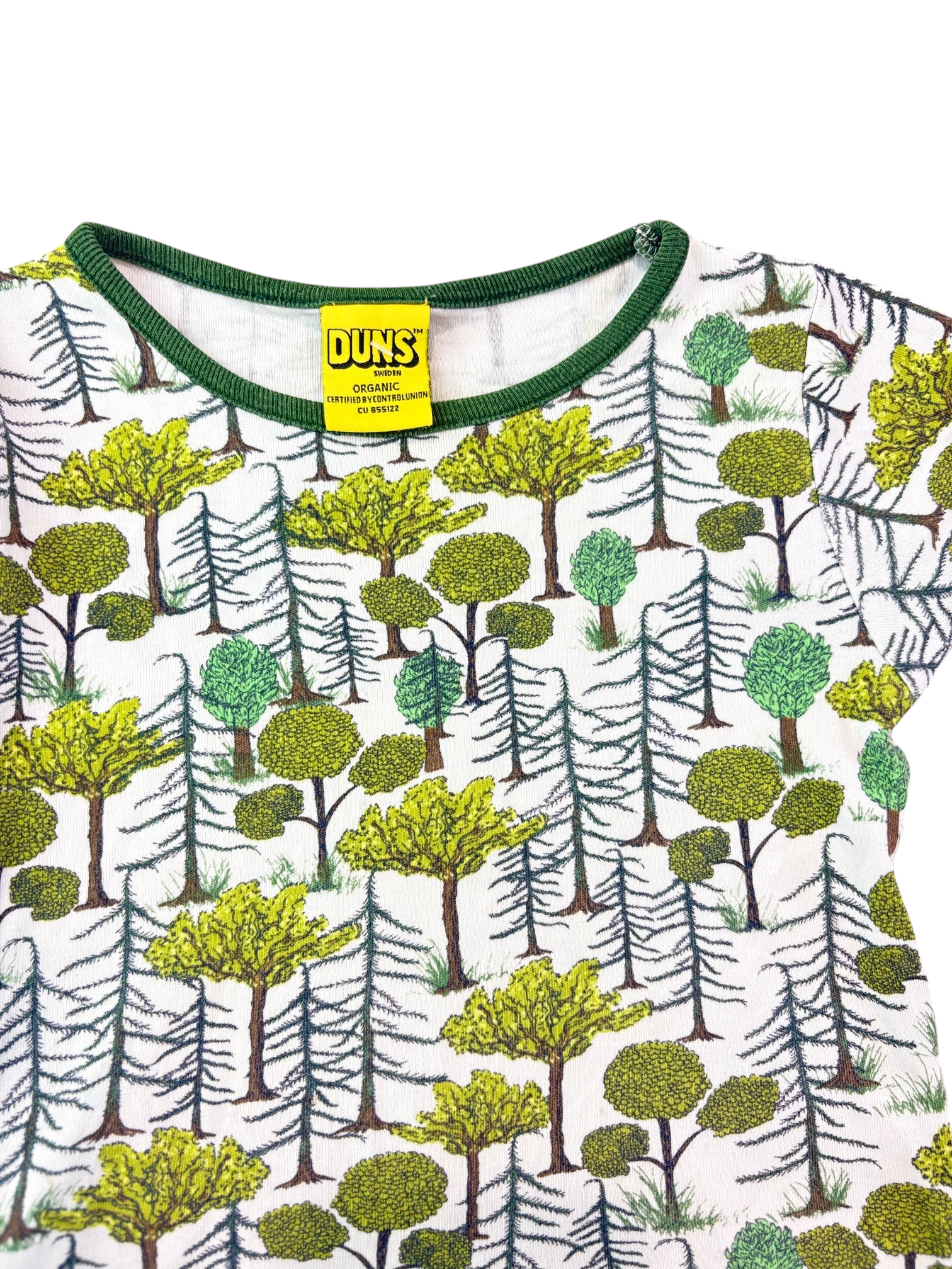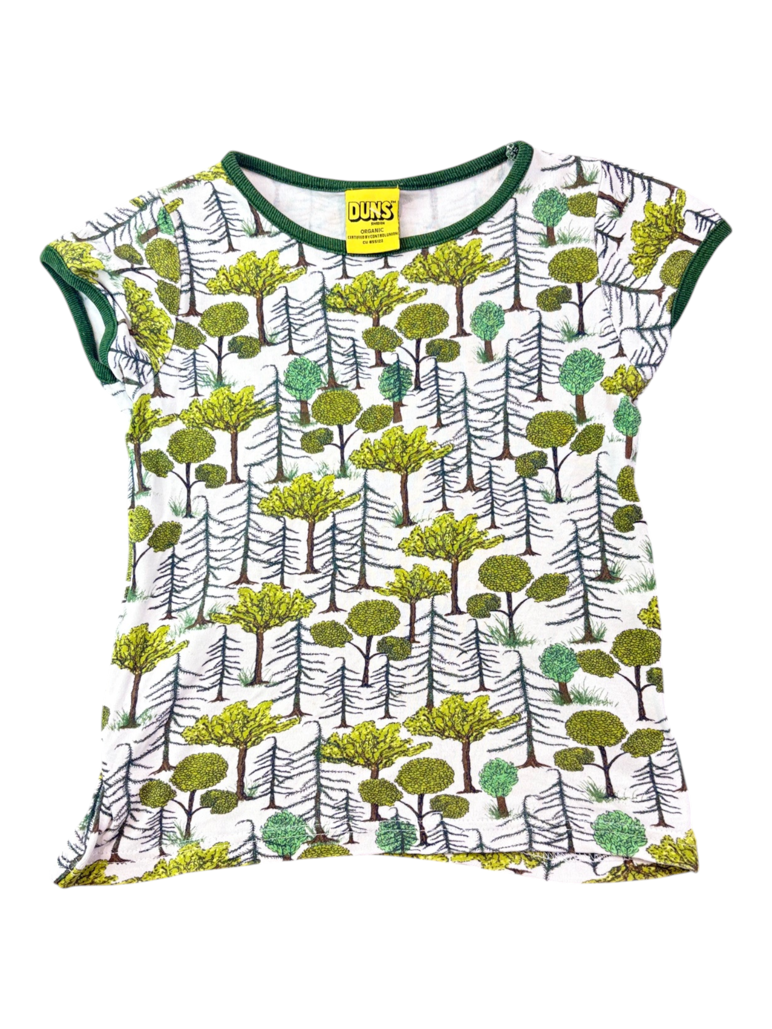 Keep it simple and sweet with this charming DUNS t-shirt! Made from 100% organic cotton, it's soft, breathable, and kind to sensitive skin and the planet. The cute tree print brings nature-inspired style, while playful green cuff details add a finishing touch.
