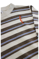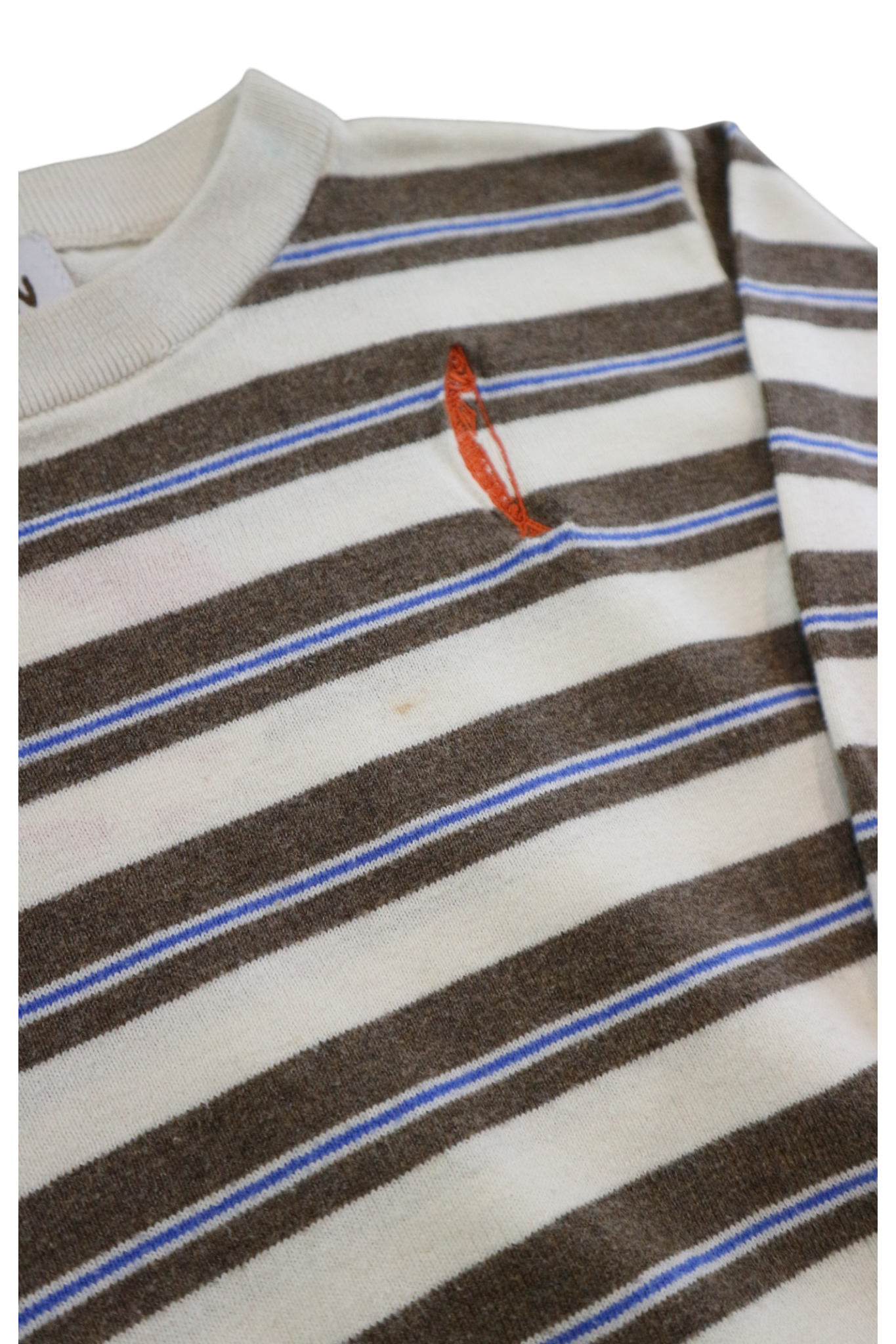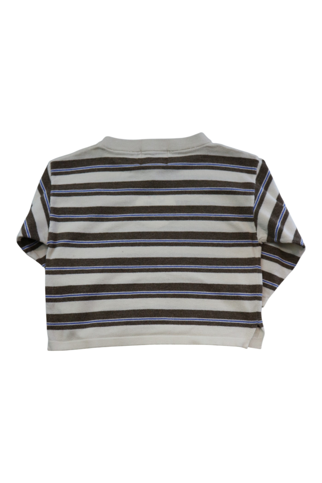 Soft knit top designed for little ones aged 18-24 months. Features a charming colour-block design in cream, brown, and blue that pairs effortlessly with everyday outfits. The gentle knit fabric offers comfort and breathability, perfect for active toddlers. Easy to care for and built to last through playtime and beyond. Fair condition, some marks.