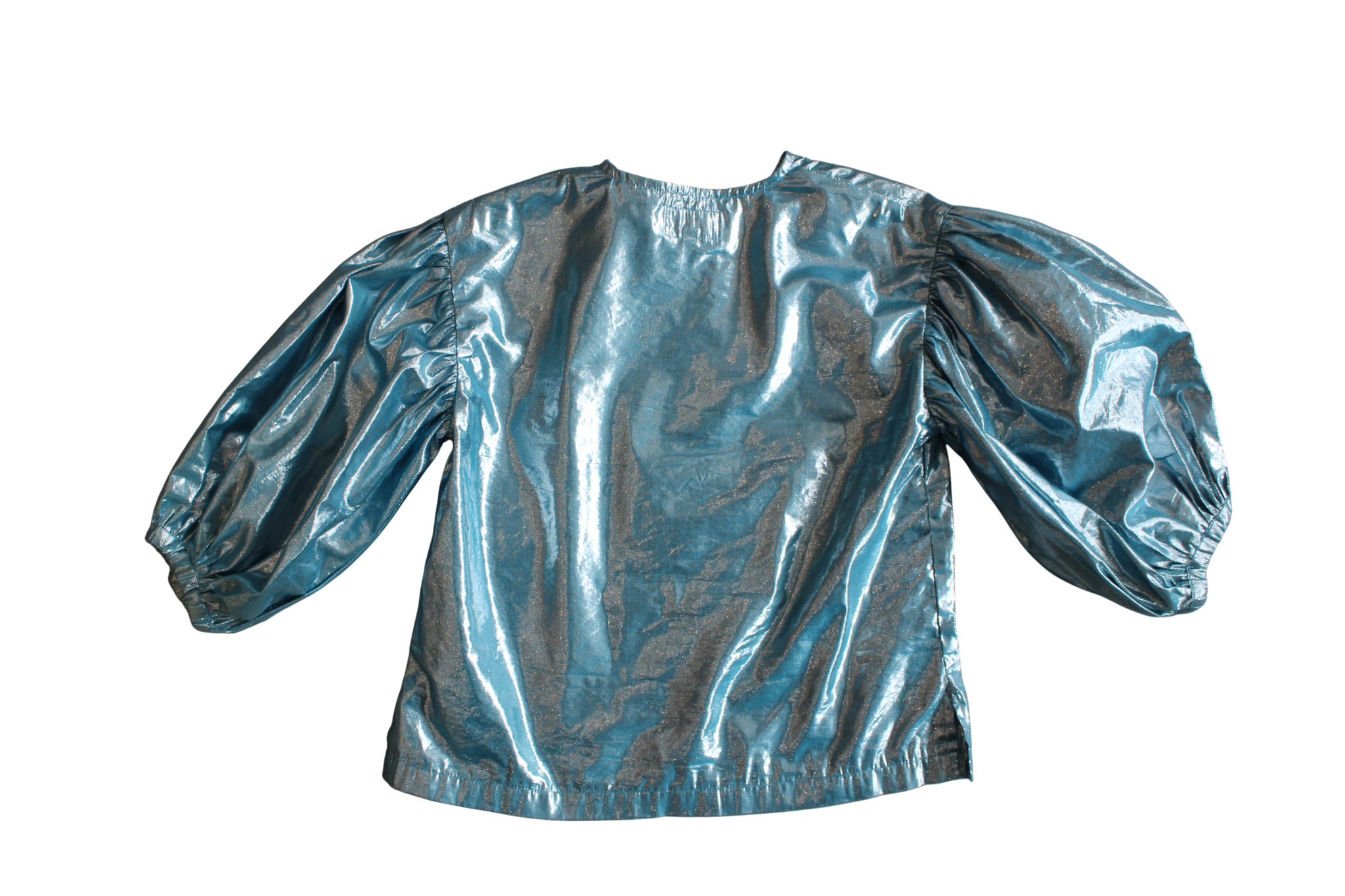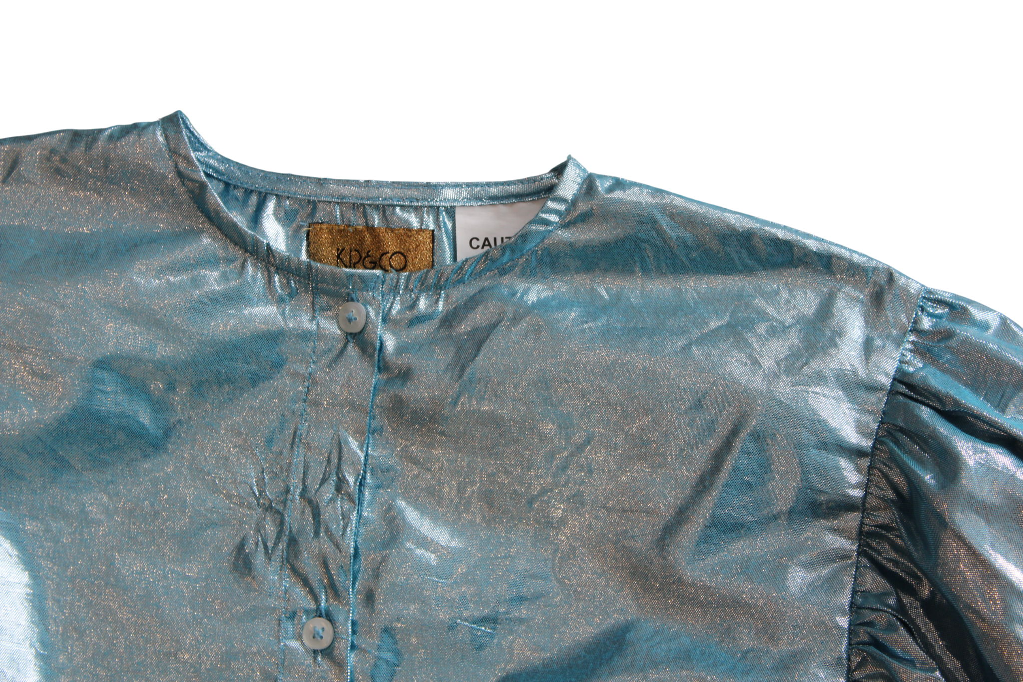 This metallic button-down blouse is designed to help you feel confident. The metallic shimmery fabric catches light beautifully, allowing you to shine in any setting. Billowy sleeves provide comfortable movement. Wear it casually or dress it up for special moments. A piece that makes getting dressed a joy.