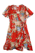 Little Auguste Sadie faux wrap mini dress in red, size 9-10yrs. Rayon.