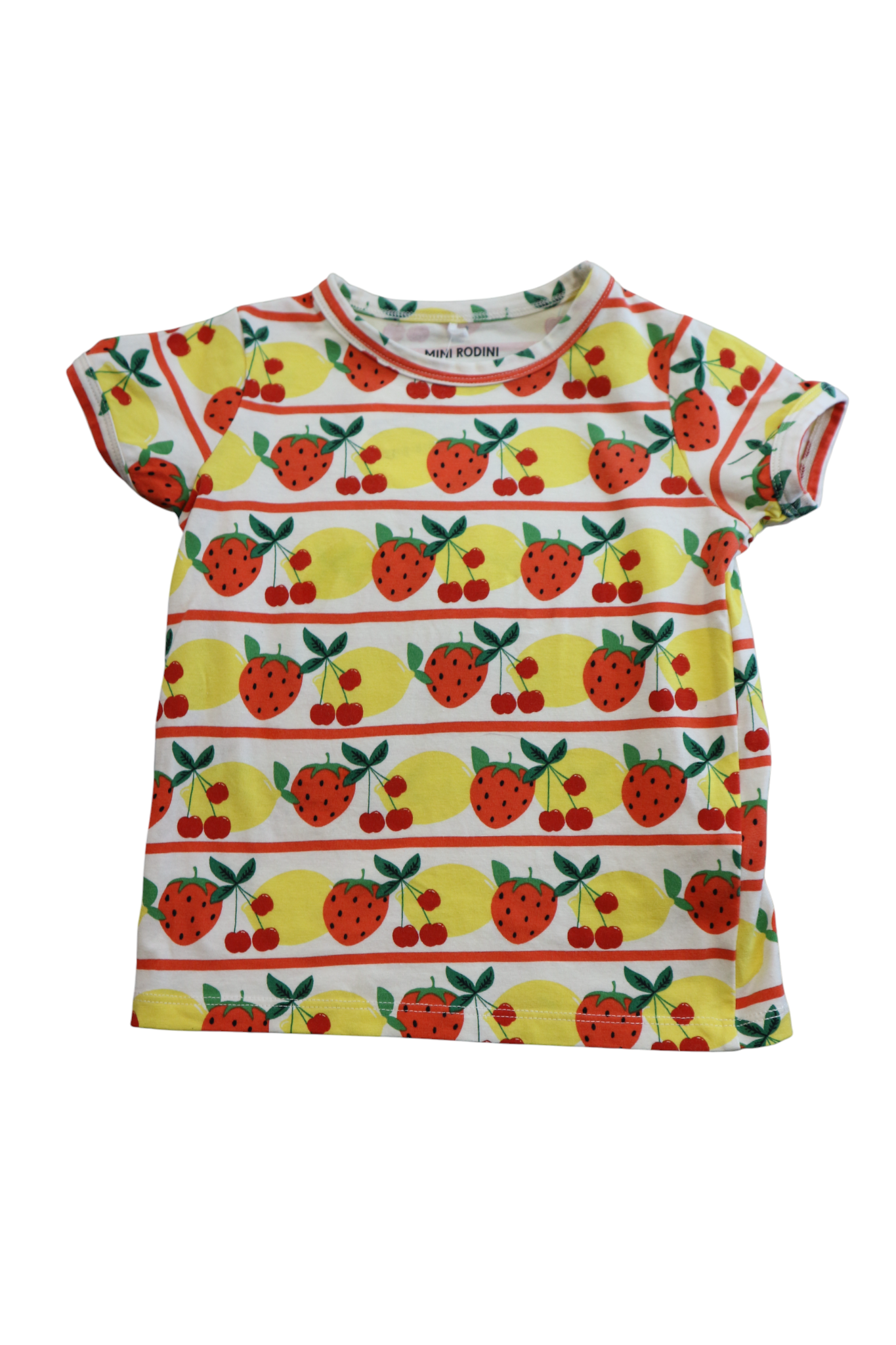 Mini Rodini fruit print t-shirt in size 1.5-3yrs. Organic cotton/elastane.
