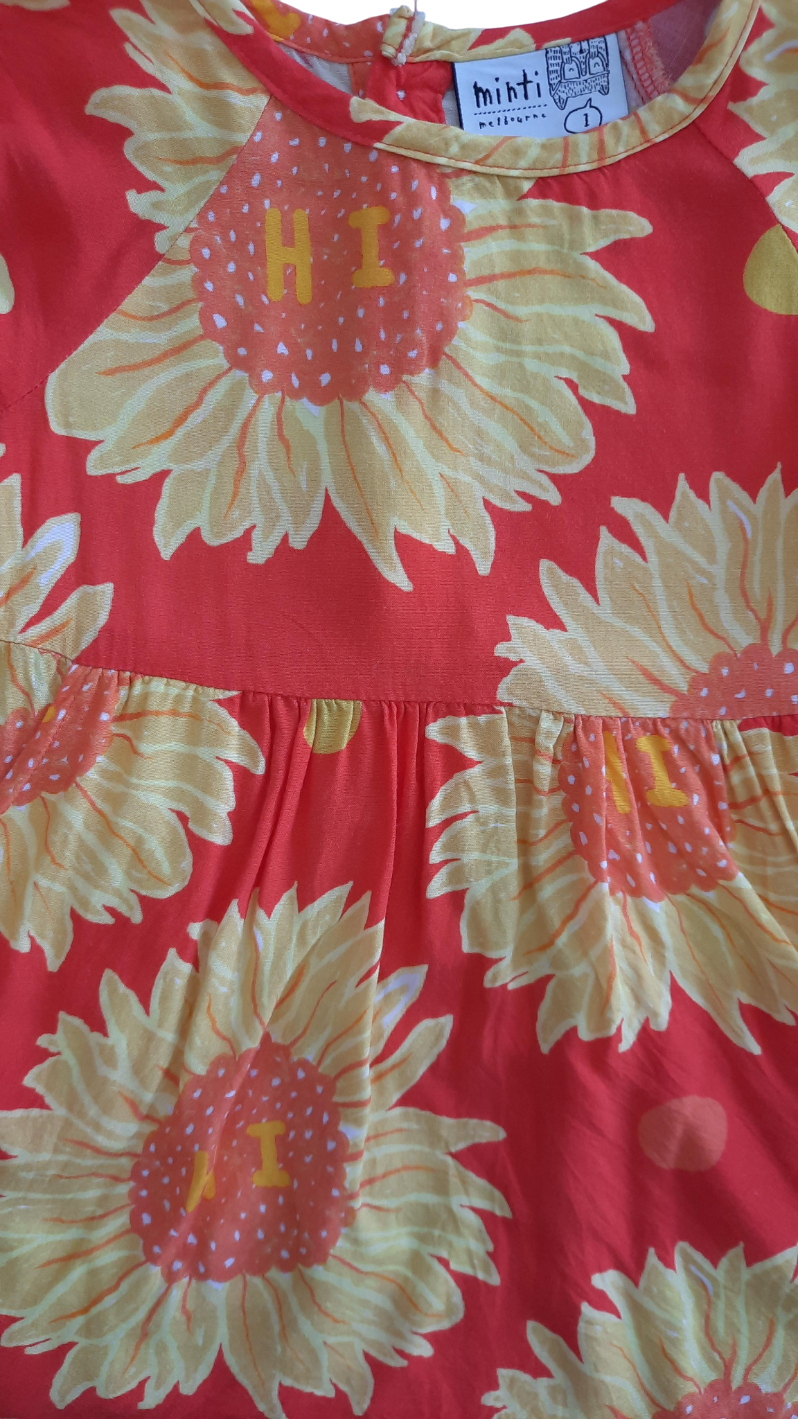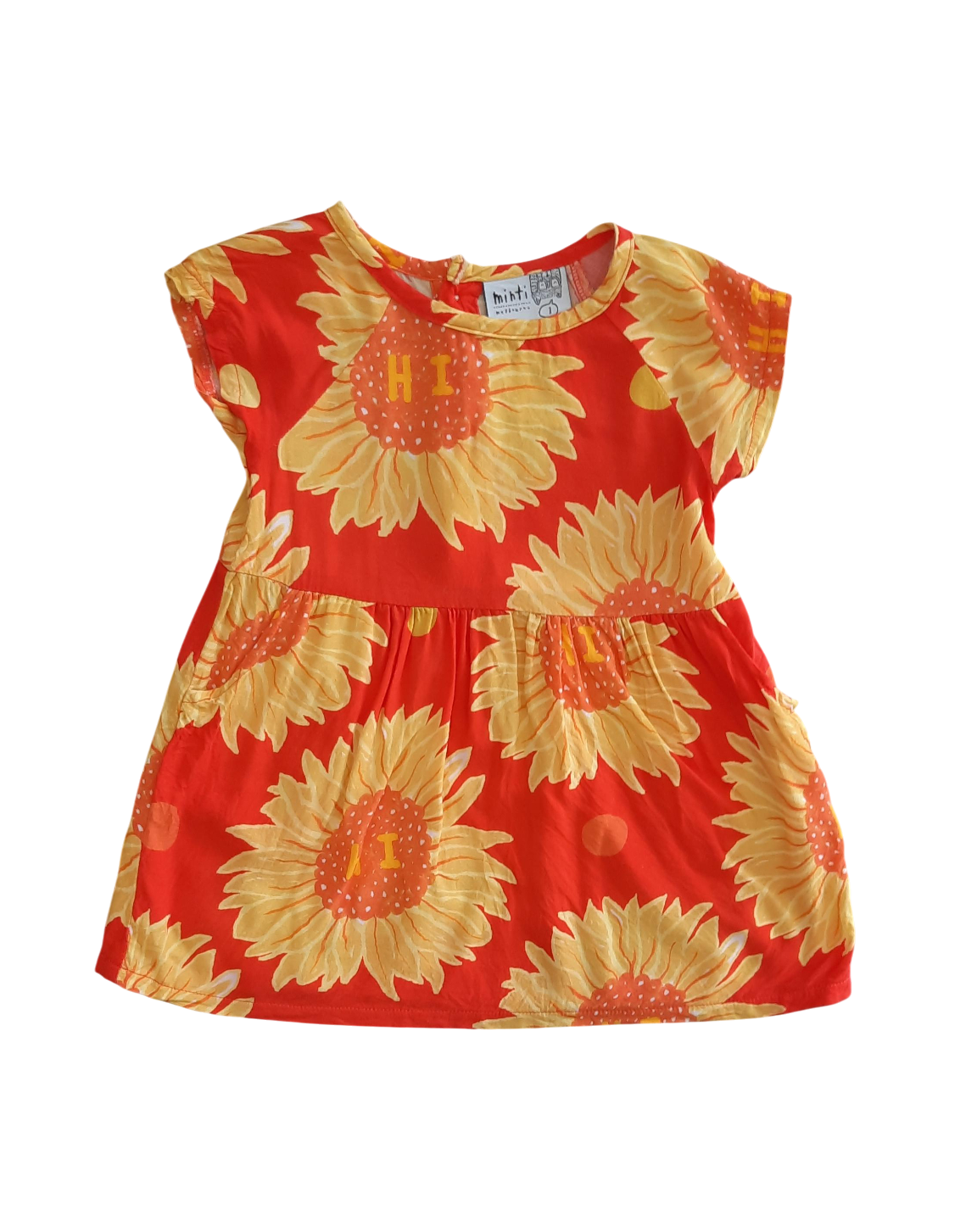 Twirl into summer in this breezy Minti Dress, where soft, lightweight fabric meets effortless style. The flowy silhouette keeps you cool and comfortable while the cheerful sunflower print brings instant joy to your childs wardrobe.