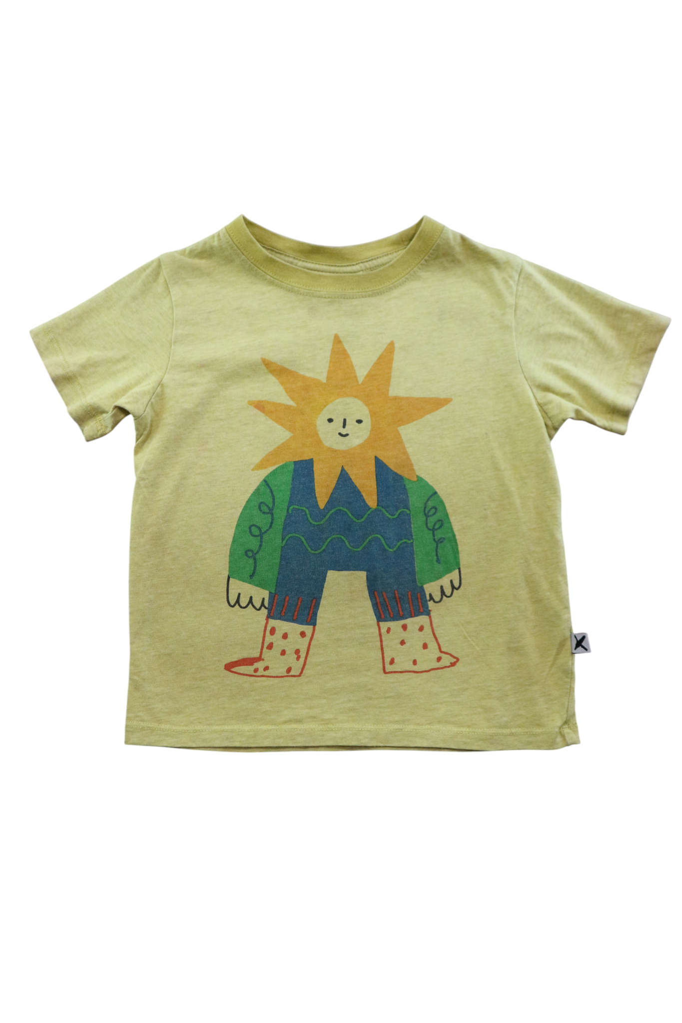 Minti yellow cute print t-shirt, size 4. Cotton/elastane.