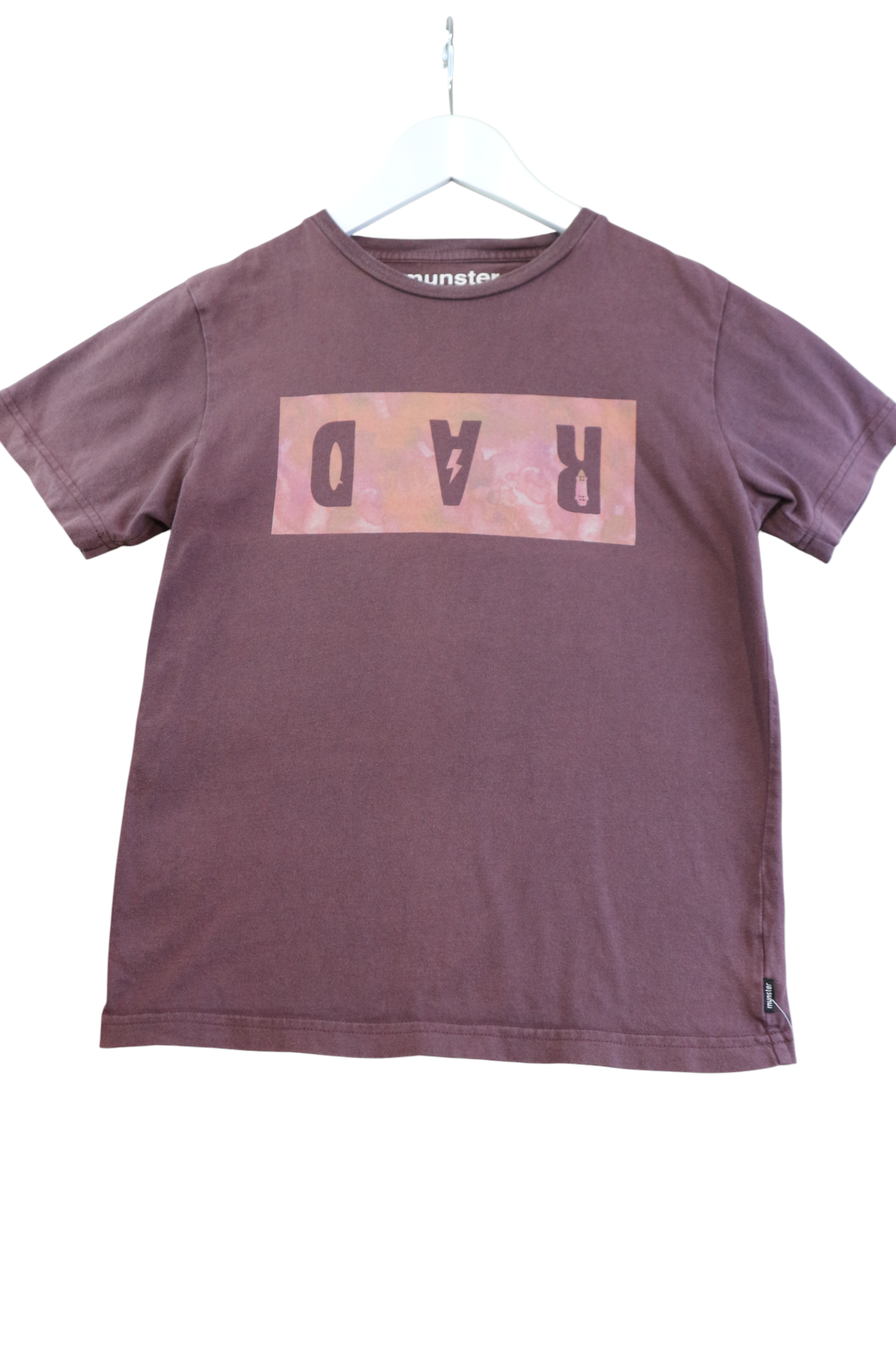 Munster bordeaux brown 'RAD' t-shirt in size 8. 100% cotton.