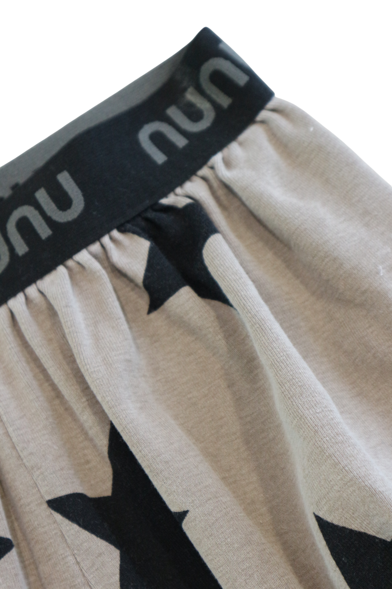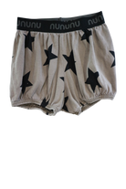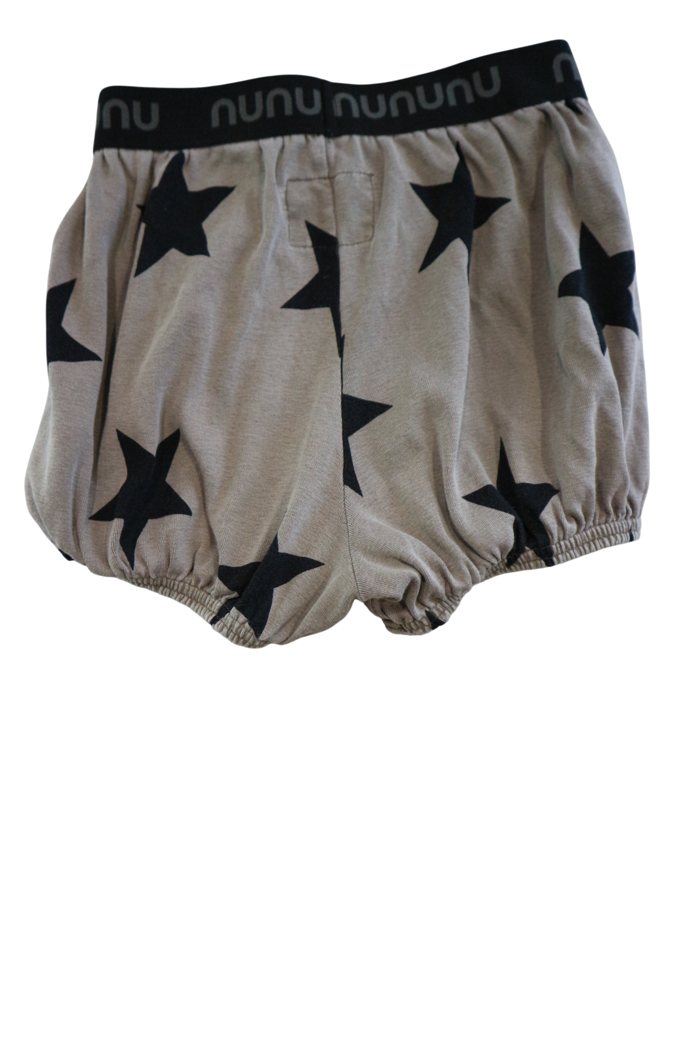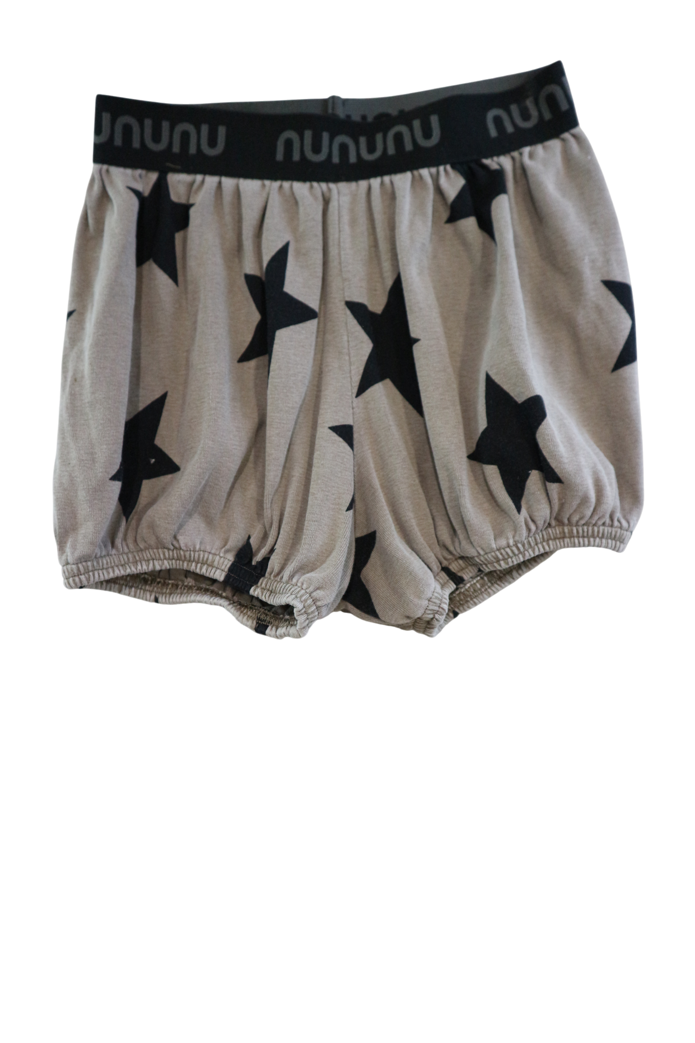 These brown shorts with a fun black star print bring a playful vibe to any outfit. Featuring a comfy elastic waist and cuffs, they offer a snug fit perfect for active days. Ideal for kids aged 8-9, they combine style and comfort effortlessly. Good condition.
