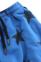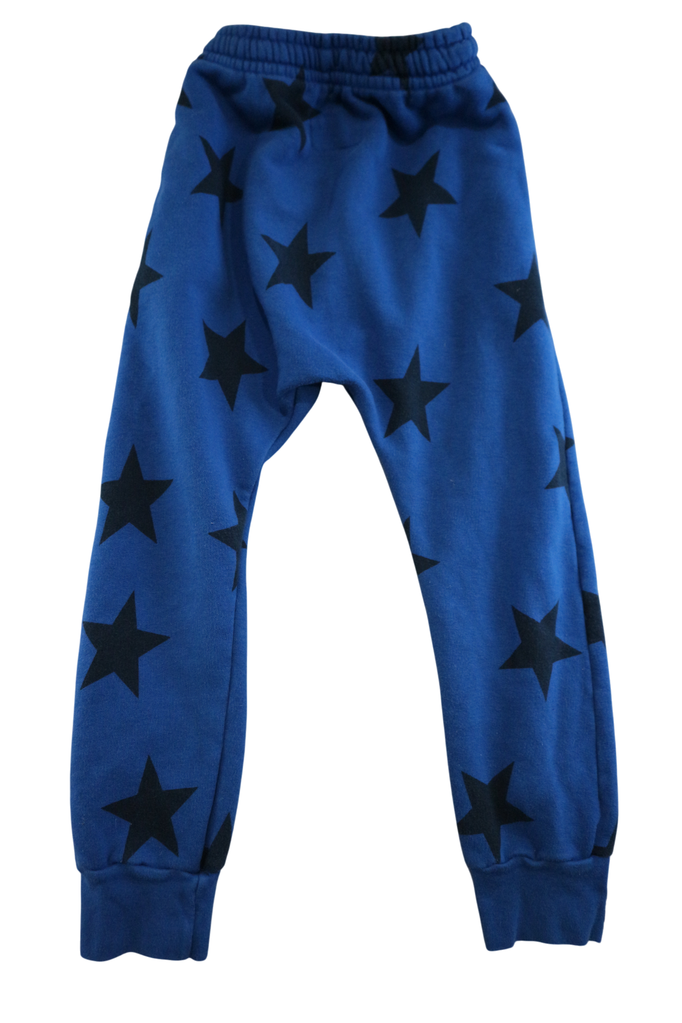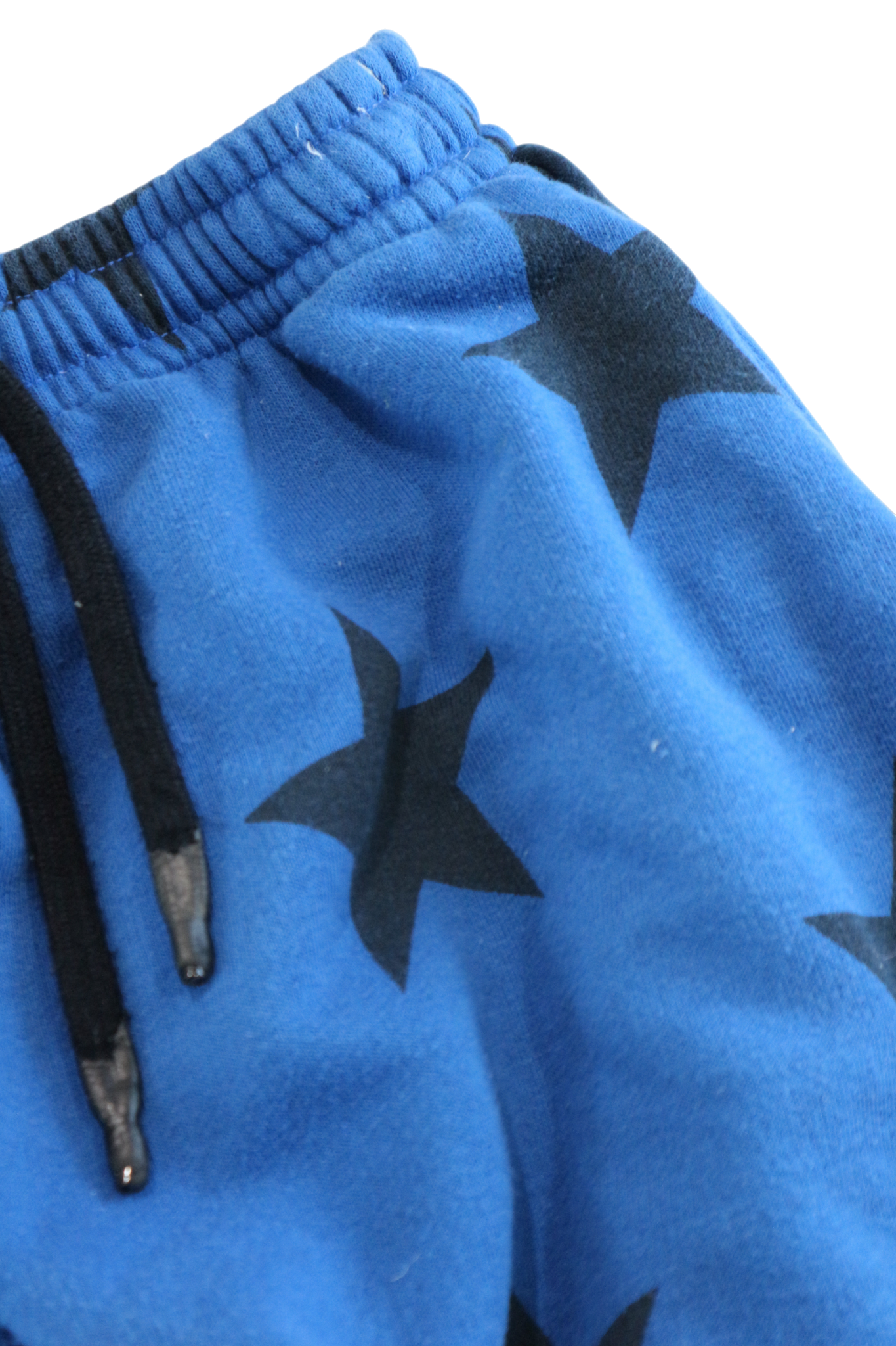 These blue kids' tracksuit pants feature a fun black star print that adds a playful touch to any outfit. Perfect for active days, they offer comfort and style for kids aged 8 to 9. Durable and easy to wear, they're ideal for playtime or casual outings. Good-fair condition, some wash fade and wear.