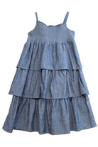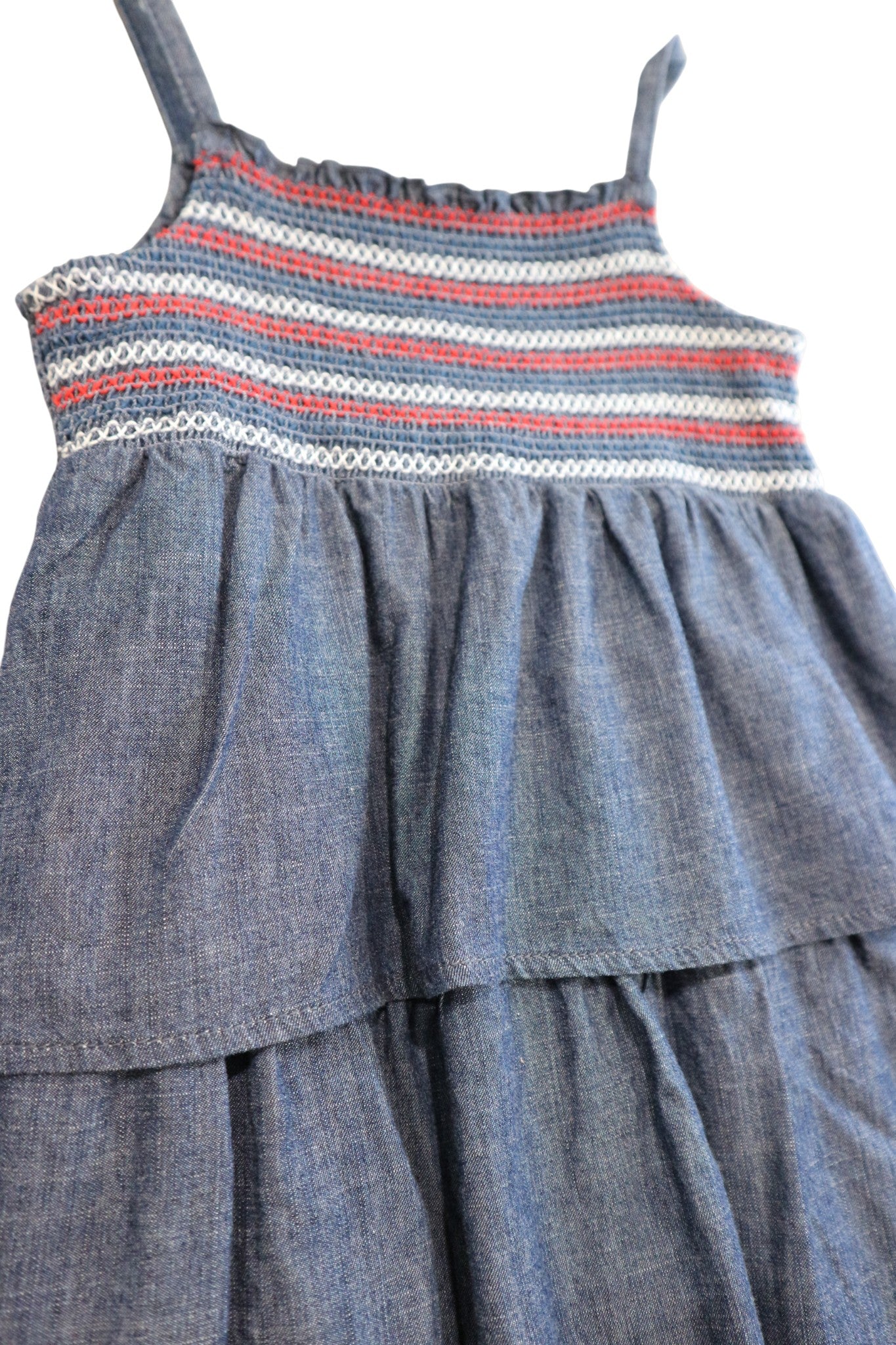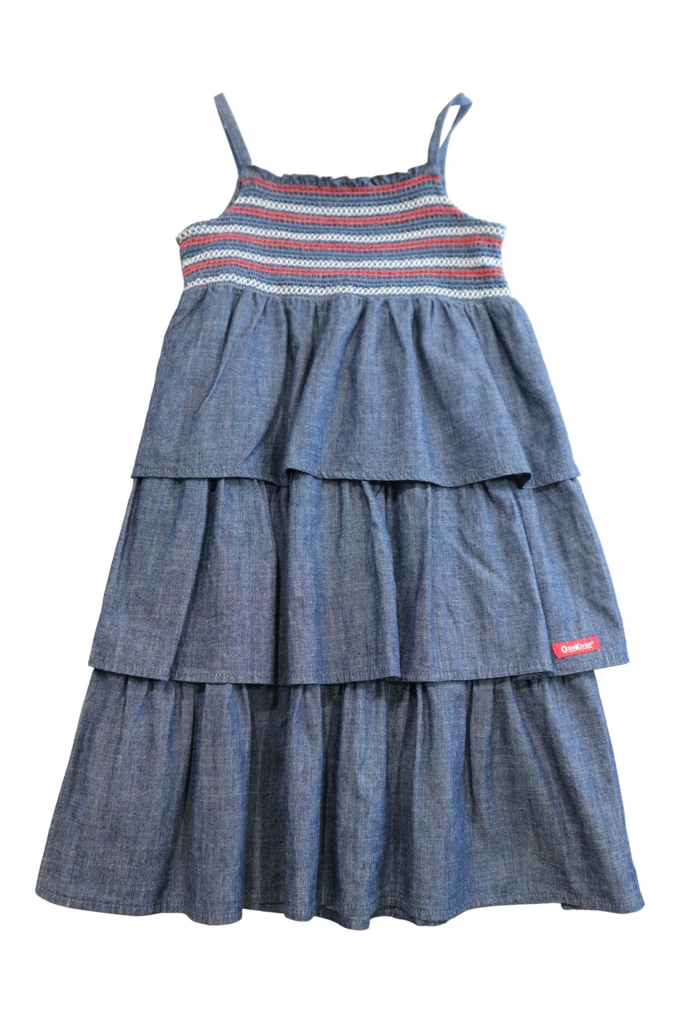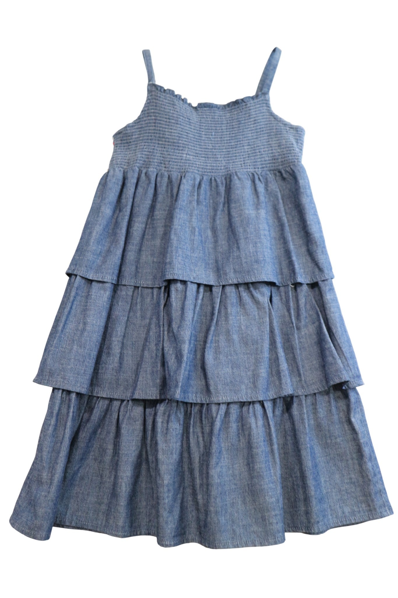 OshKosh blue chambray tiered dress with smocking detail, size 6. Cotton.