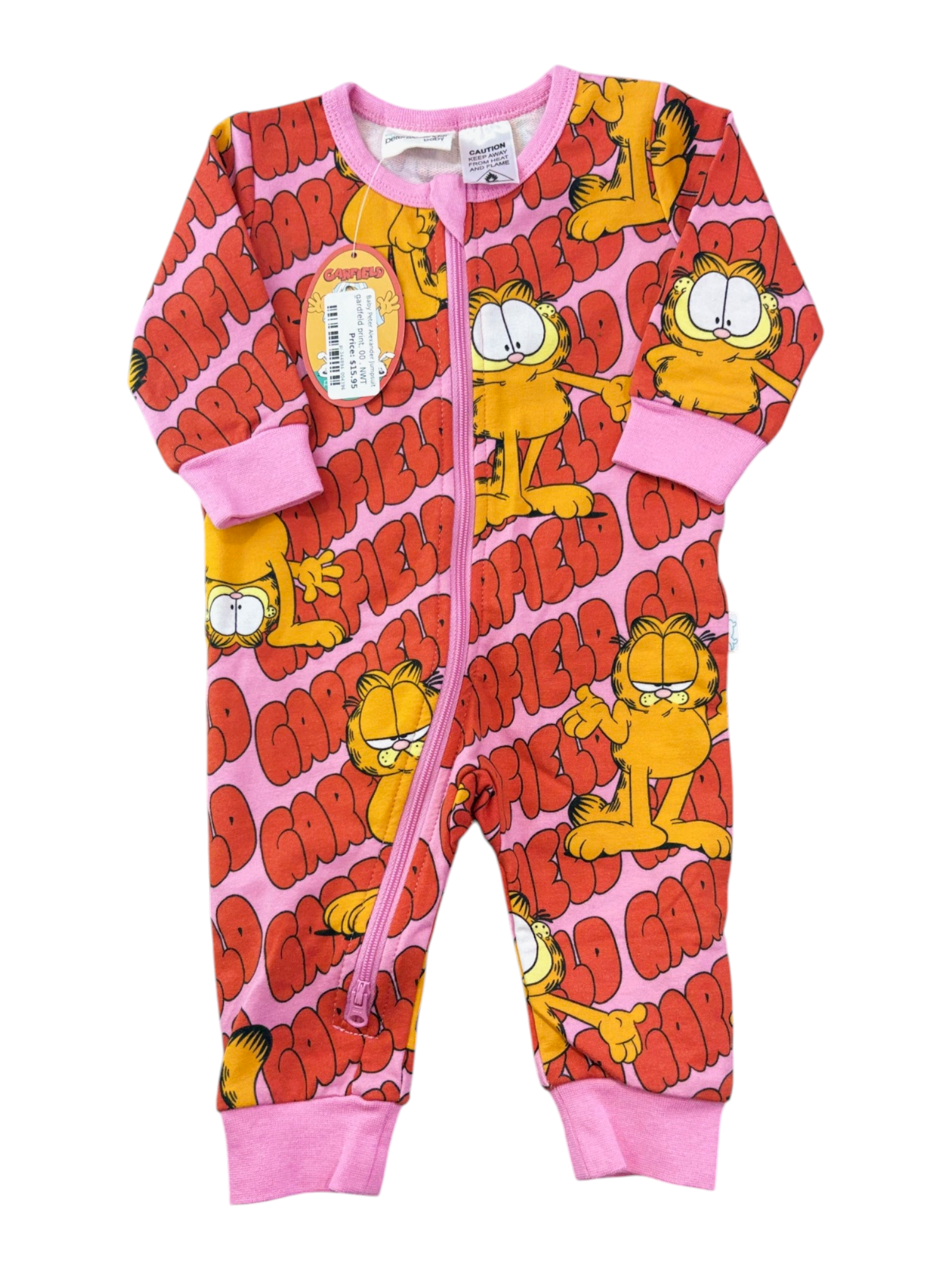 Snuggle up in this adorable Peter Alexander jumpsuit featuring a fun pink and orange Garfield print! The soft cotton, polyester, and elastane blend hugs baby comfortably while allowing plenty of stretch for movement. The clever two-way zip makes nappy changes and bedtime a breeze.