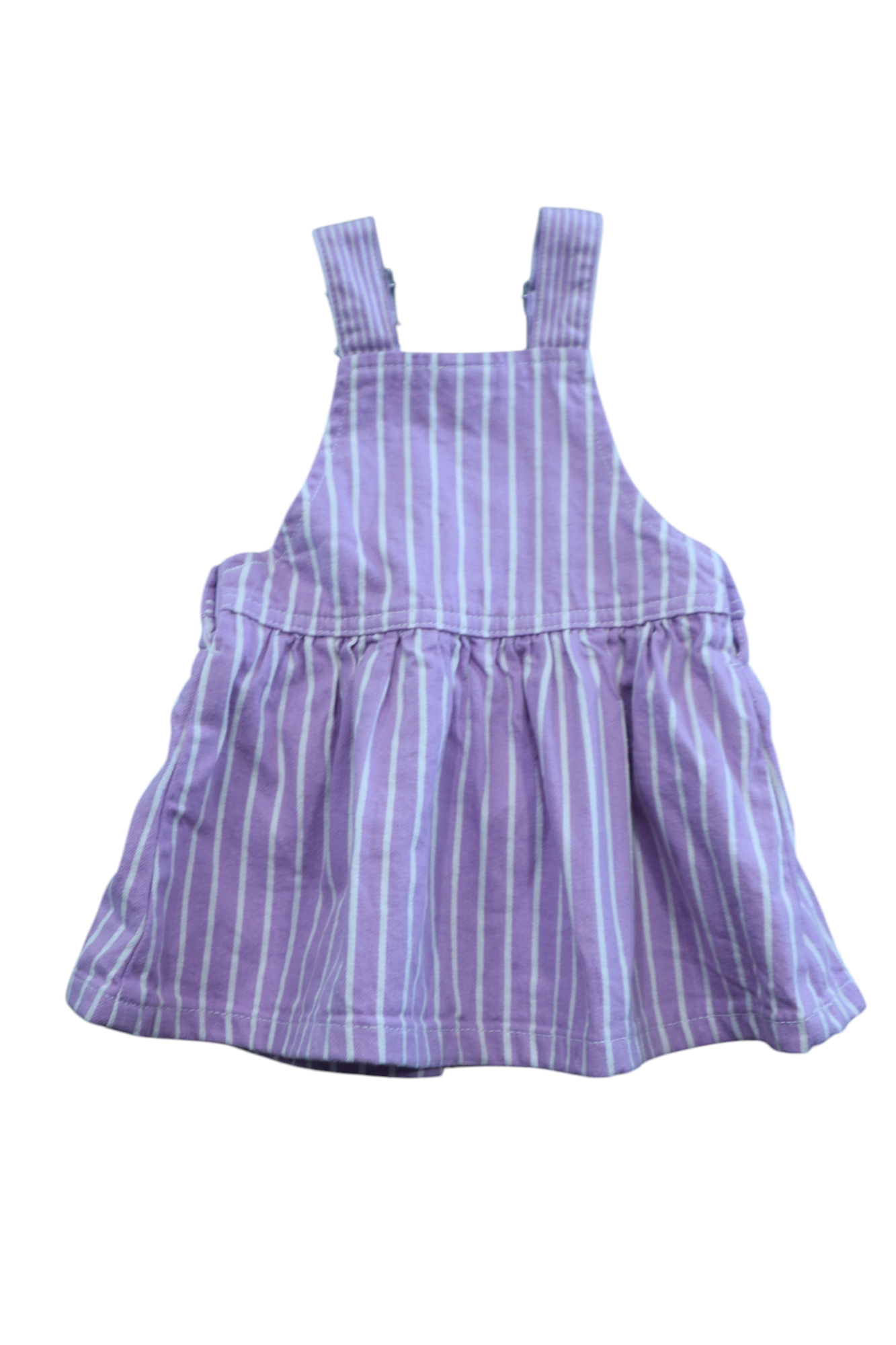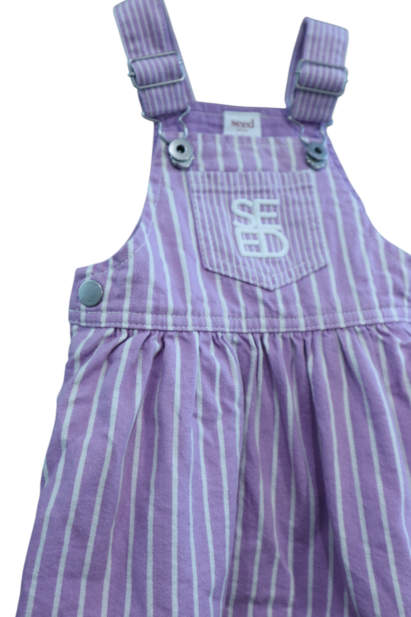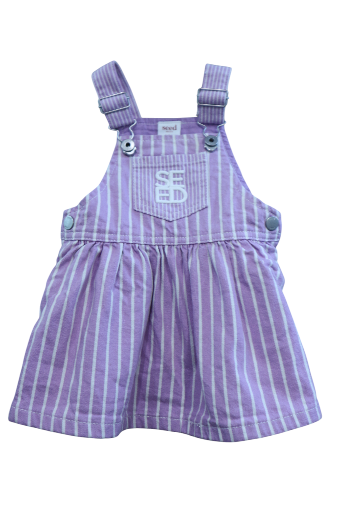 Seed pinafore in purple with white stripes, size 00. Cotton.