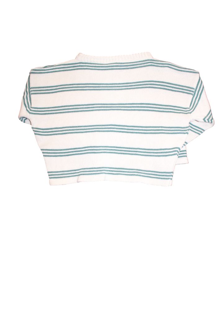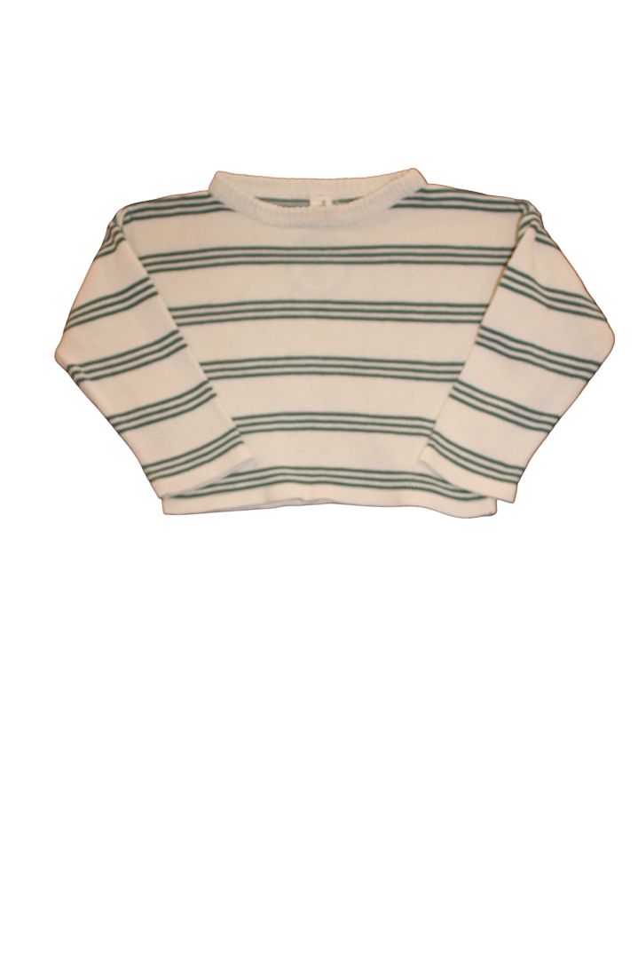 Snuggle up in this adorable boxy knit jumper that's made for growing toddlers! The soft cream and green palette keeps things fresh and fun, while the relaxed fit gives plenty of room to play, climb, and explore. Pure cotton construction means it's breathable and kind to sensitive skin. Good preloved condition.