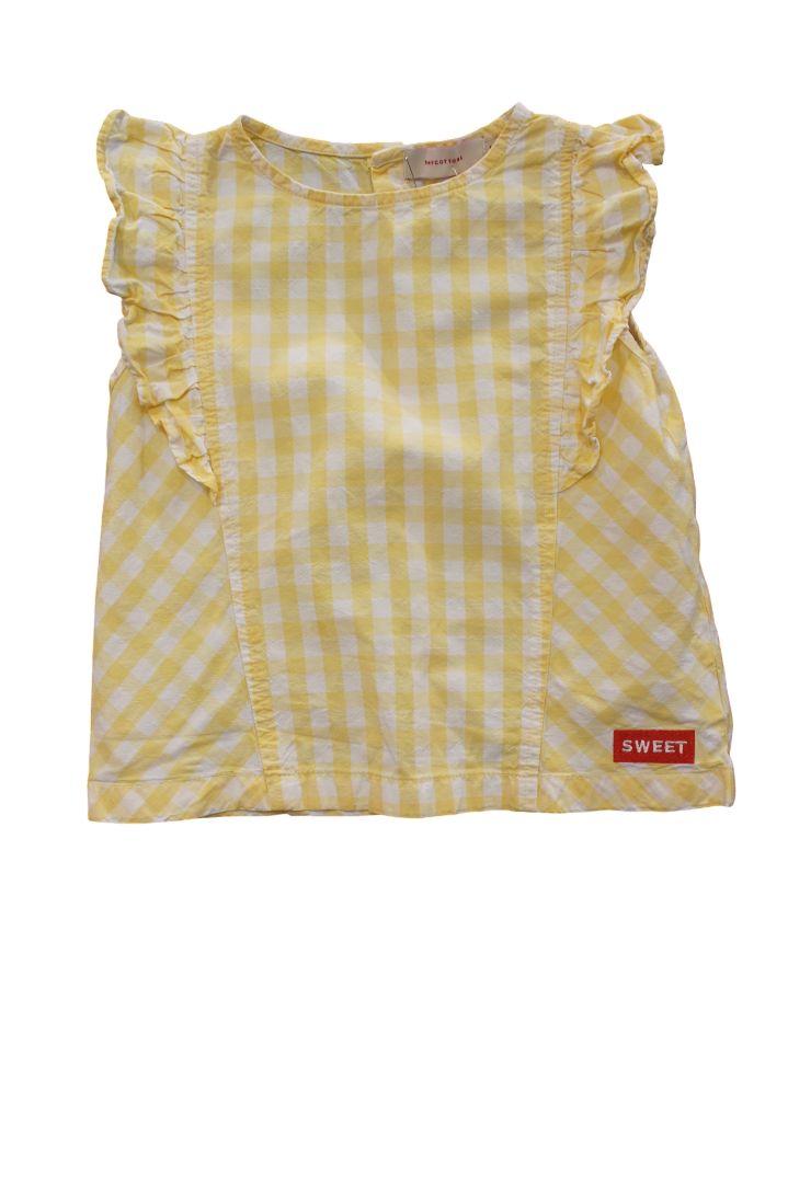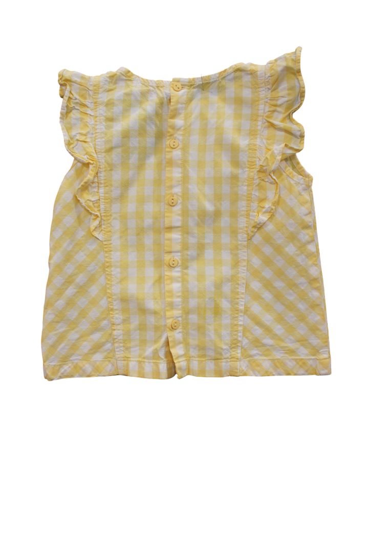 Brighten any day with this cheerful yellow check top featuring delightful shoulder ruffles! The playful ruffle detail adds a touch of whimsy and movement, while the classic check pattern keeps it timeless and easy to mix and match. Perfect for creating fun outfits that let little personalities shine through with style and charm.